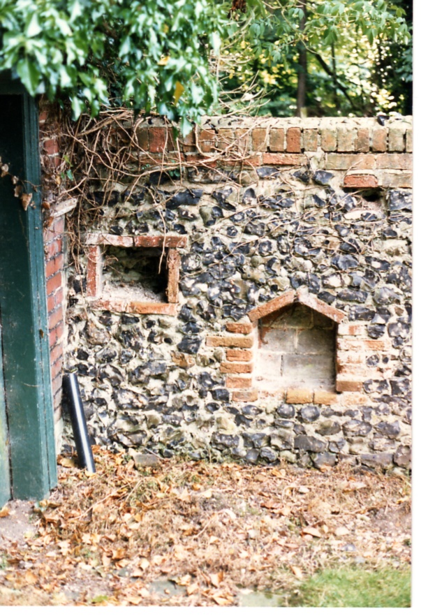 there is another rectangular recess shown in photo (10x13x10), probably not for bees; 1988: condition excellent (back of recess restored?
