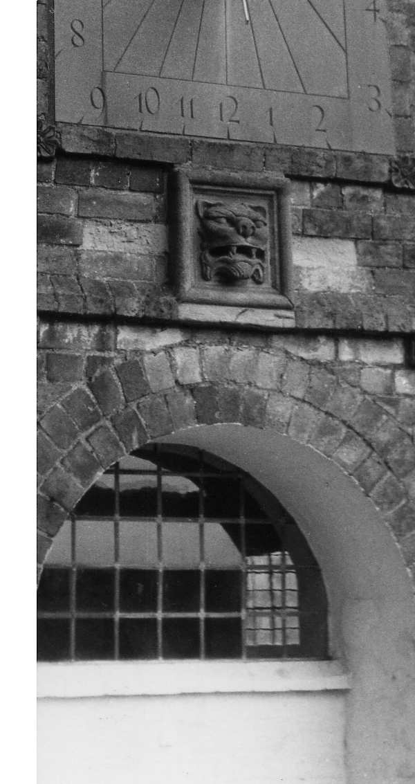 mouth of carved lion on outside wall incorporates 2 entrances for bees, with pipes leading to 2 hives in window seat above door; NT; cf. 0273 (no known connection)
