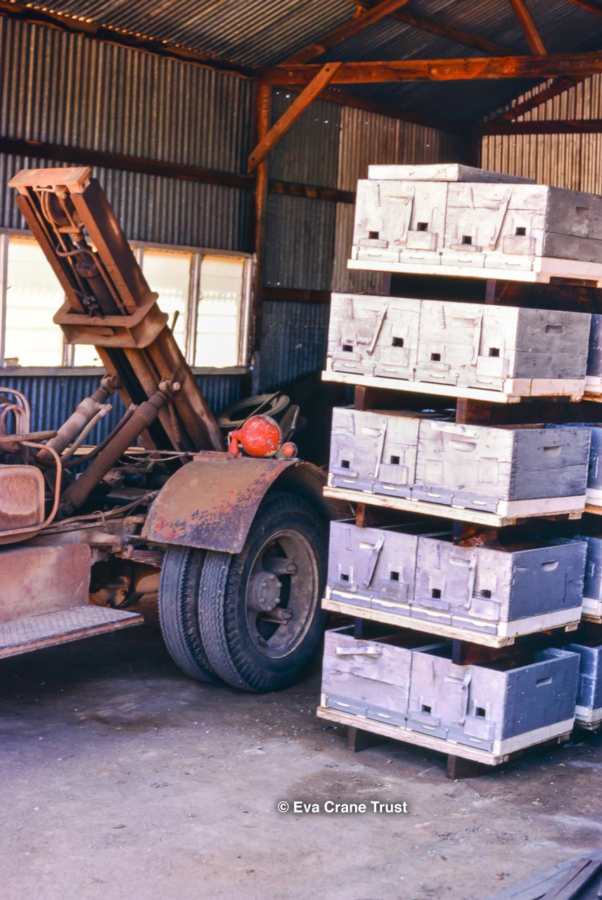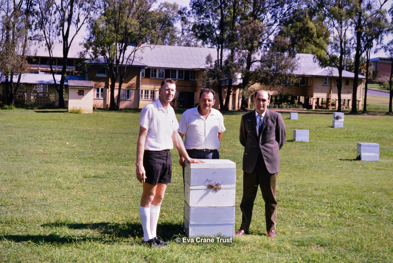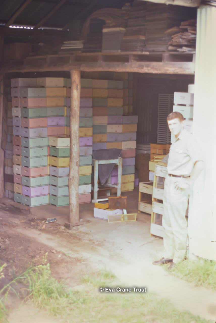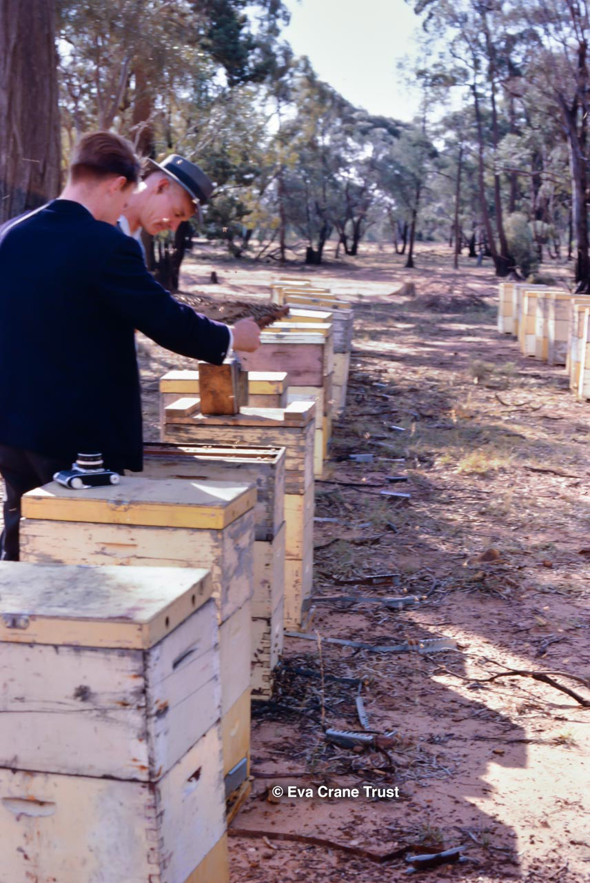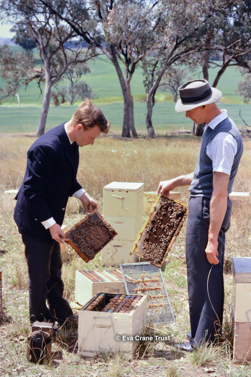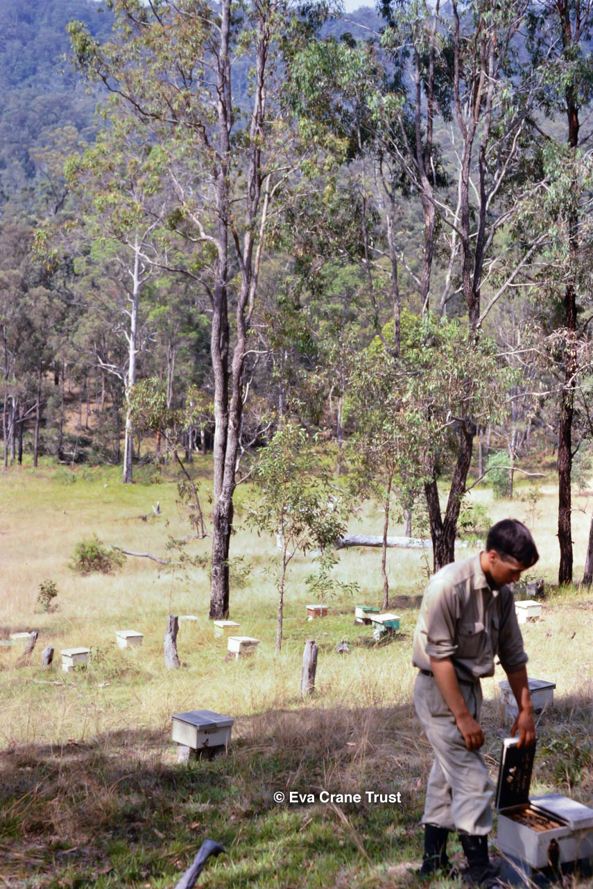 AUSTRALIA, Queensland , 1967, Norman Rice showing hive with half-frames. Irrigated alfalfa.