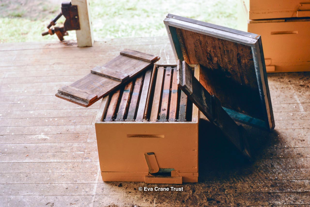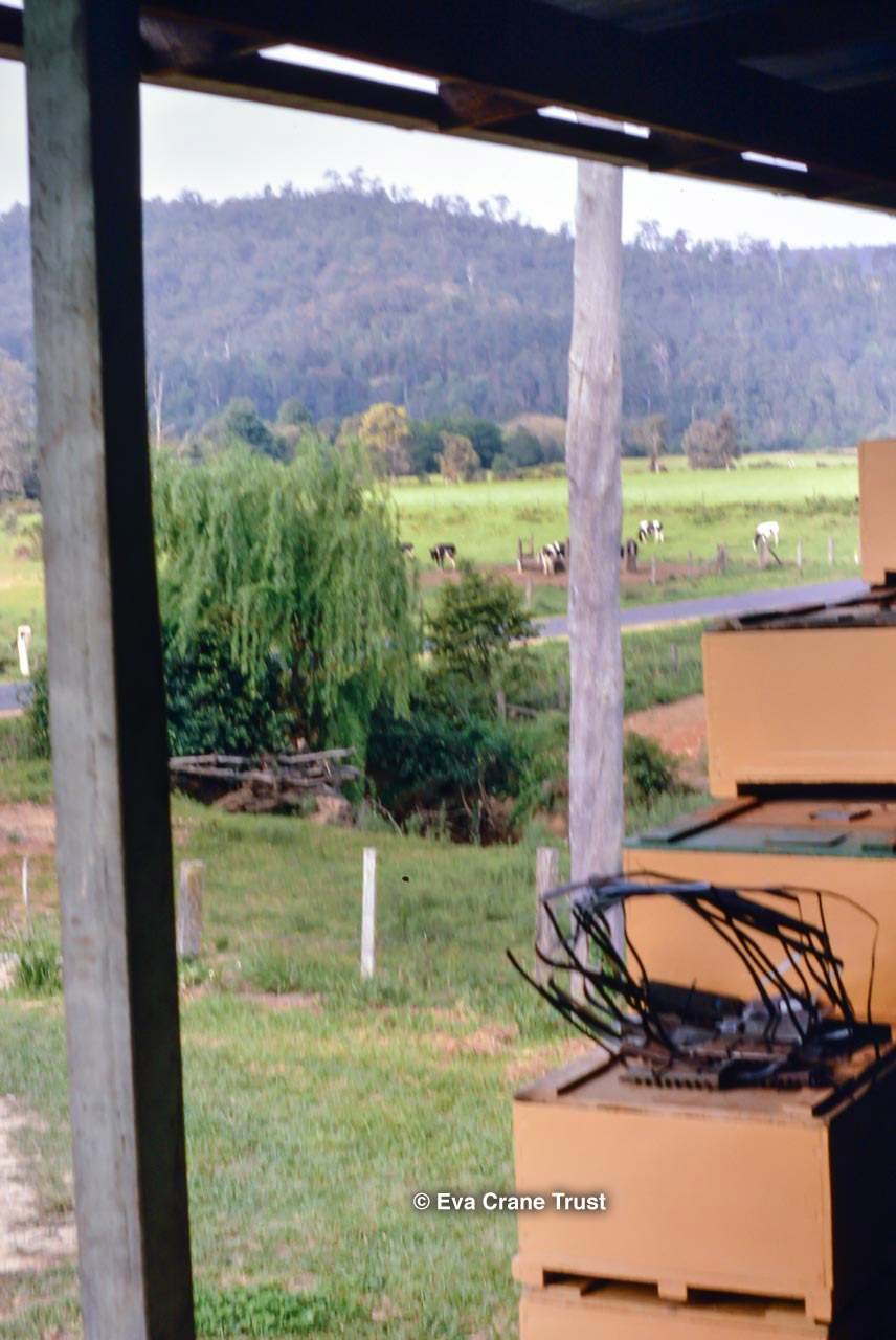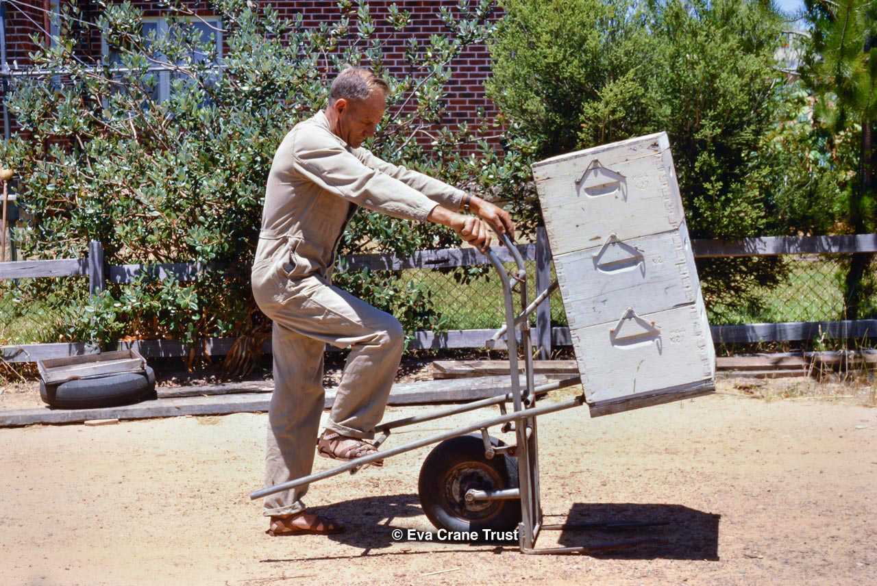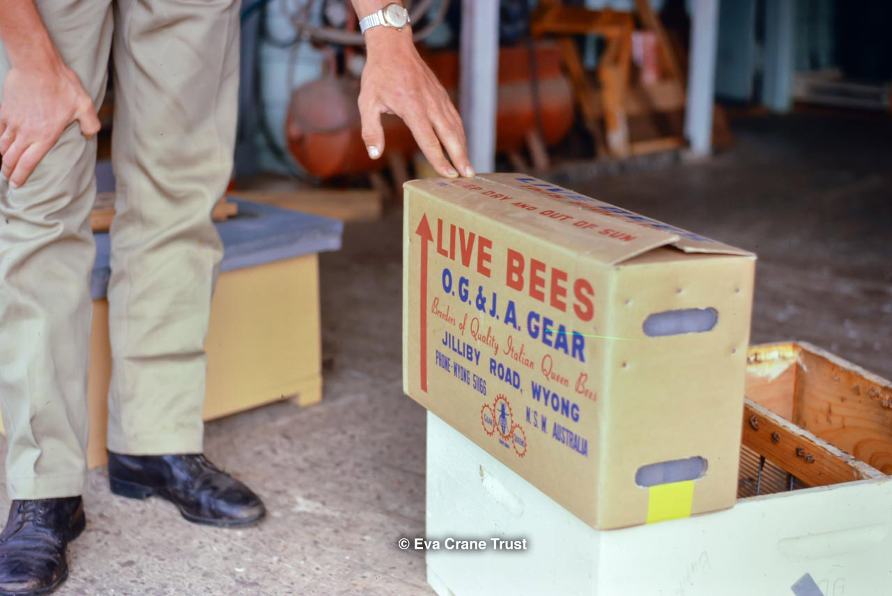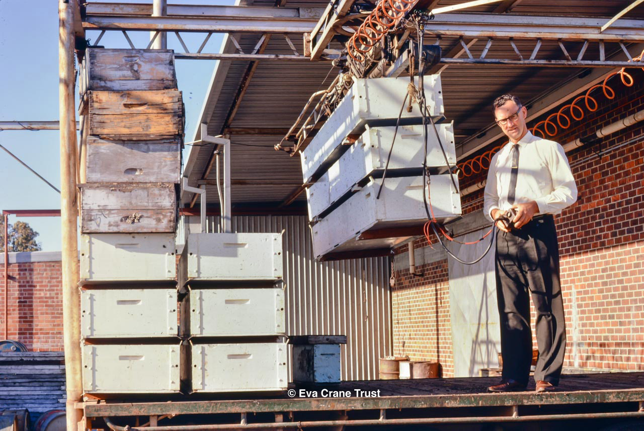 AUSTRALIA, Queensland , 1967, Norman Rice showing hive with half-frames. Irrigated alfalfa.