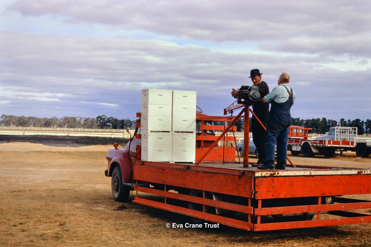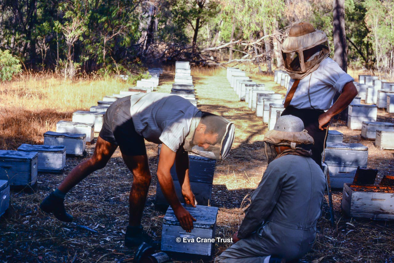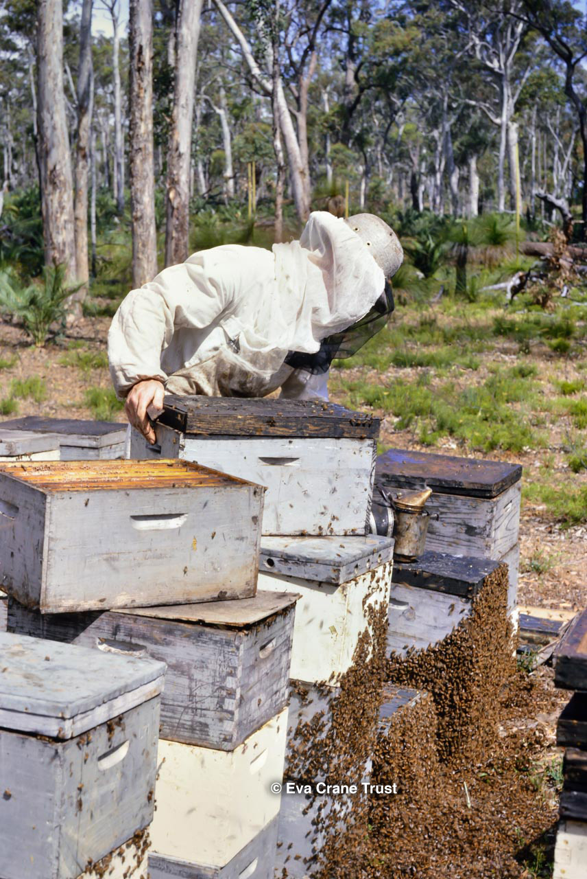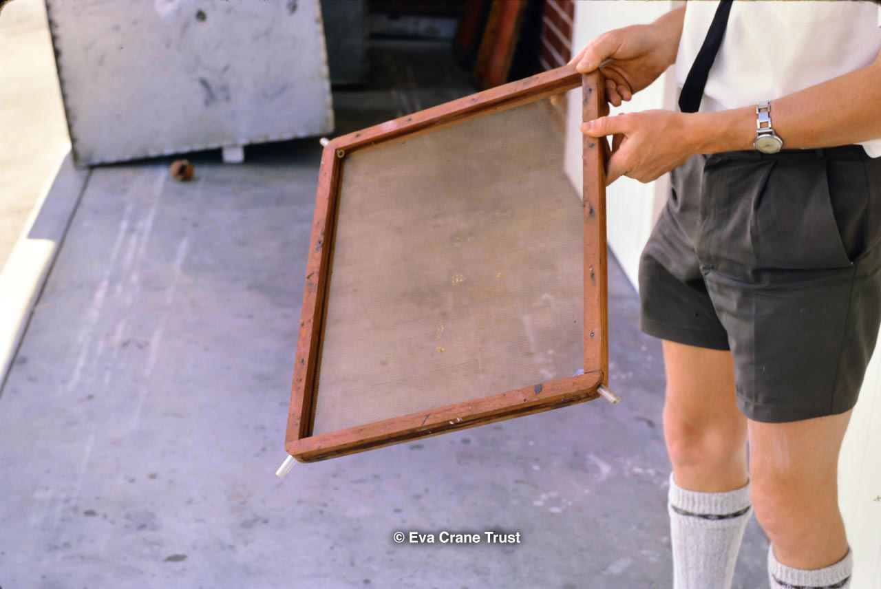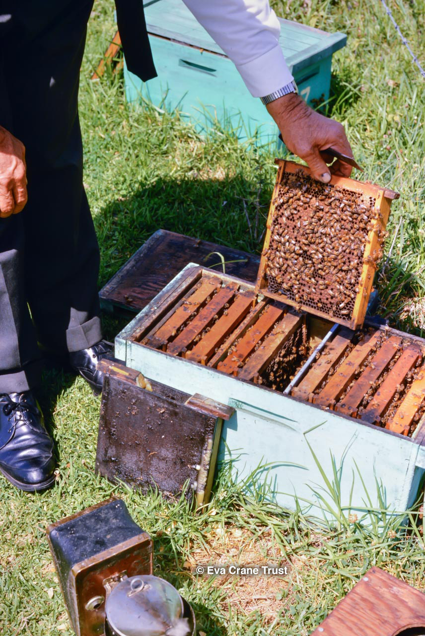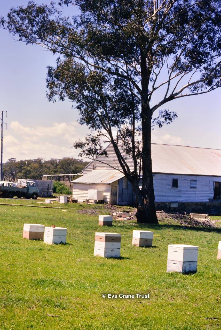 AUSTRALIA, Queensland , 1967, Norman Rice showing hive with half-frames. Irrigated alfalfa.