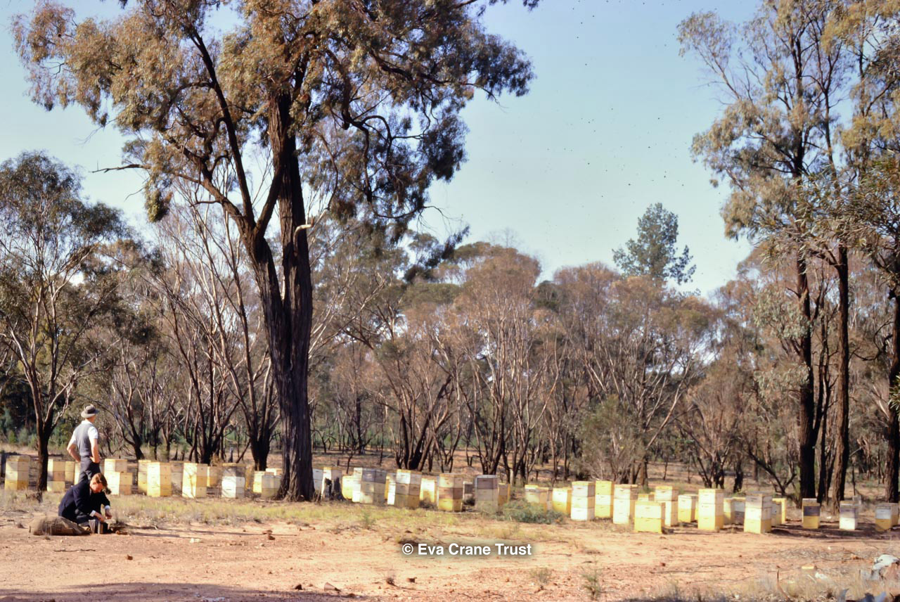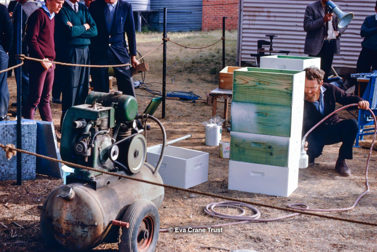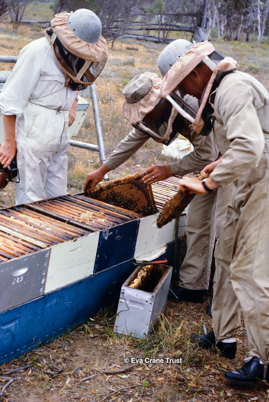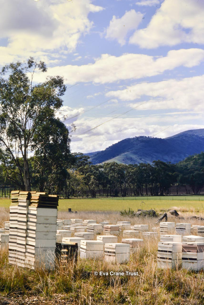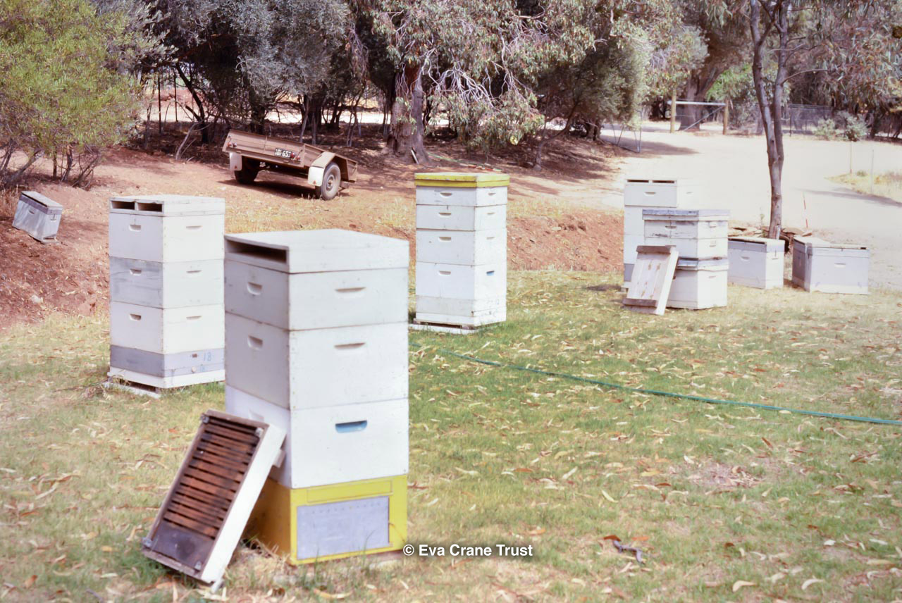 AUSTRALIA, Queensland , 1967, Norman Rice showing hive with half-frames. Irrigated alfalfa.