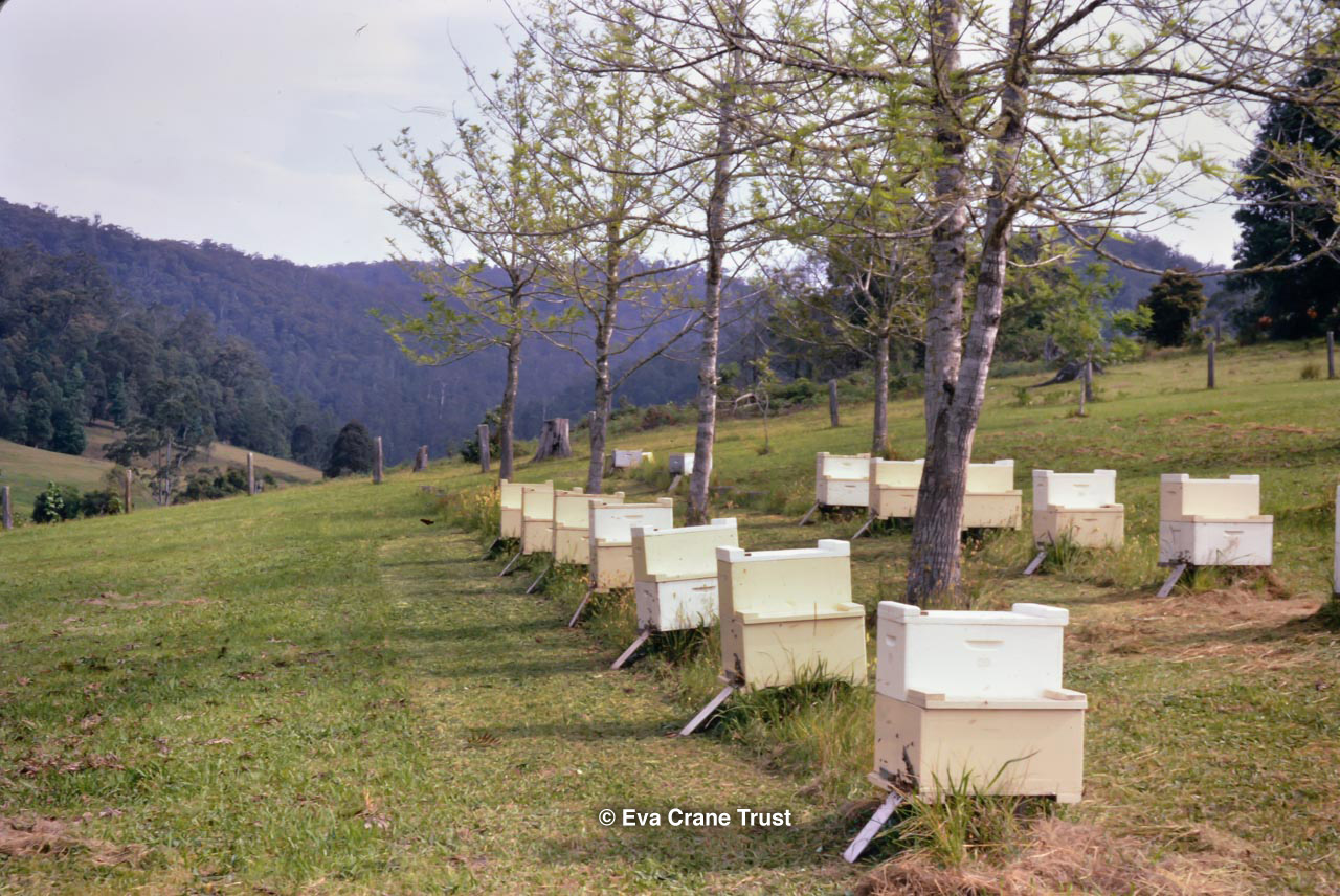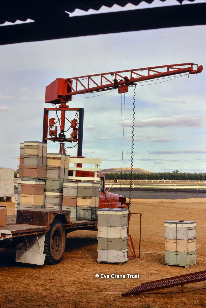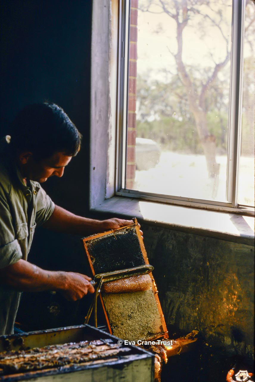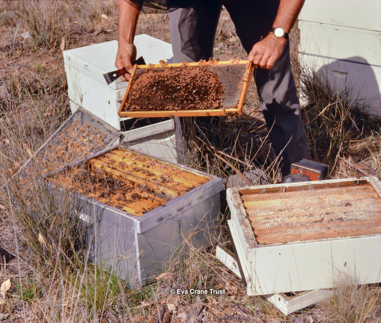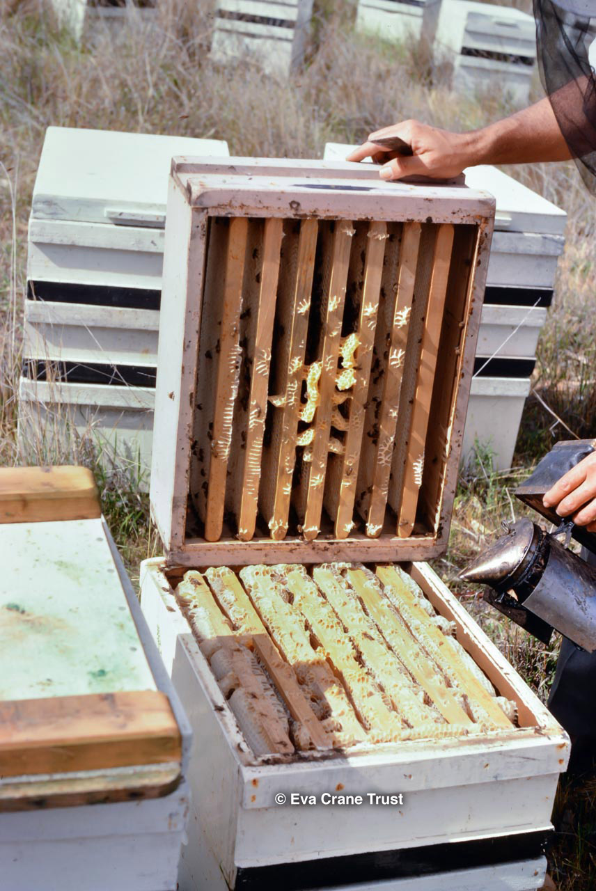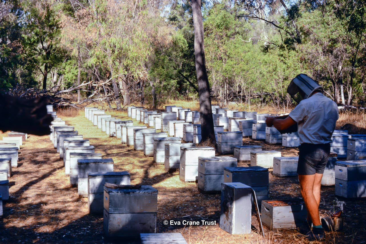 AUSTRALIA, Queensland , 1967, Norman Rice showing hive with half-frames. Irrigated alfalfa.