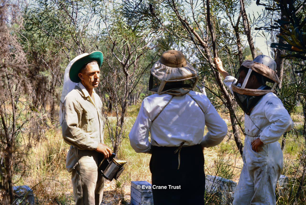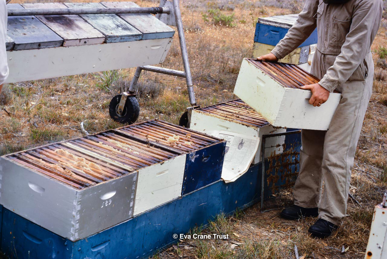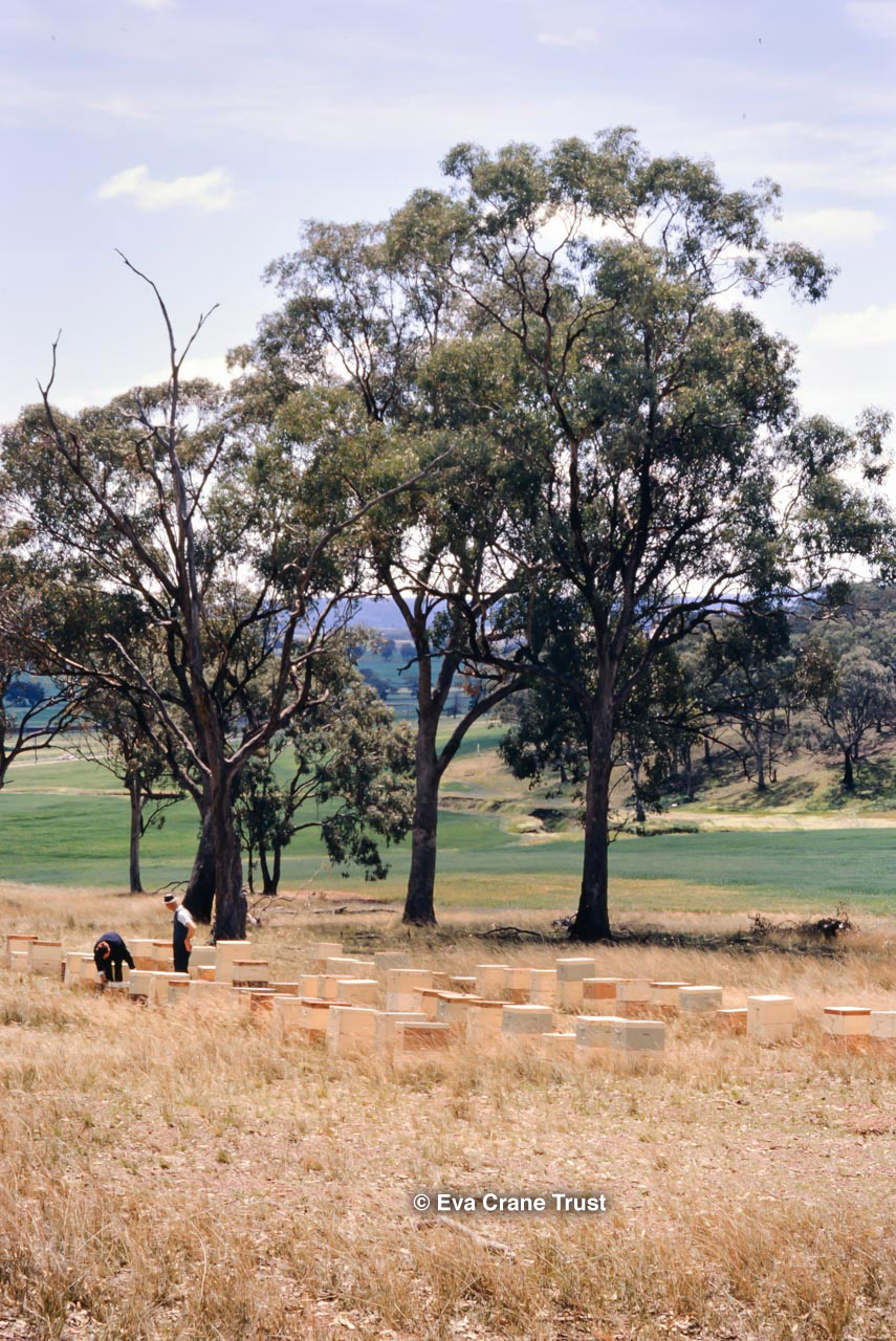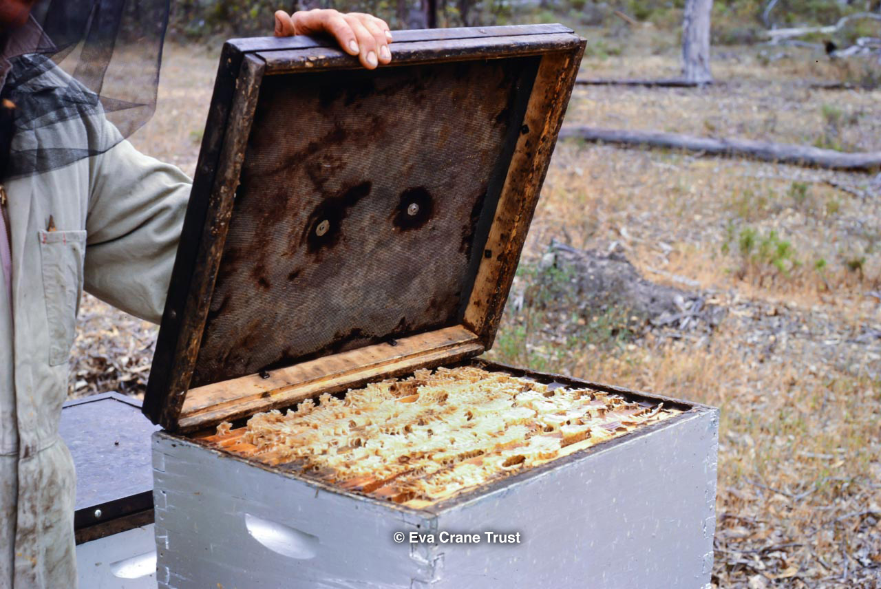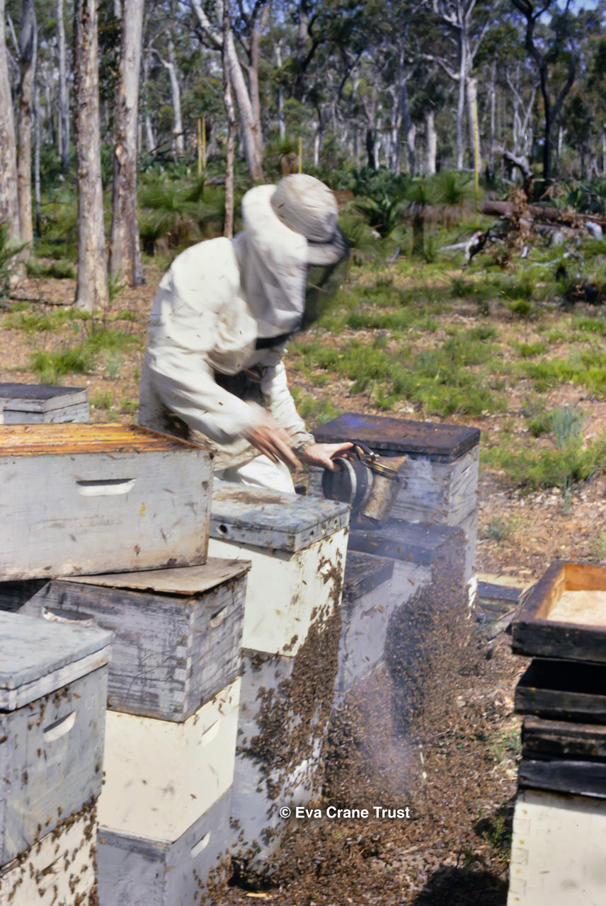 AUSTRALIA, Queensland , 1967, Norman Rice showing hive with half-frames. Irrigated alfalfa.