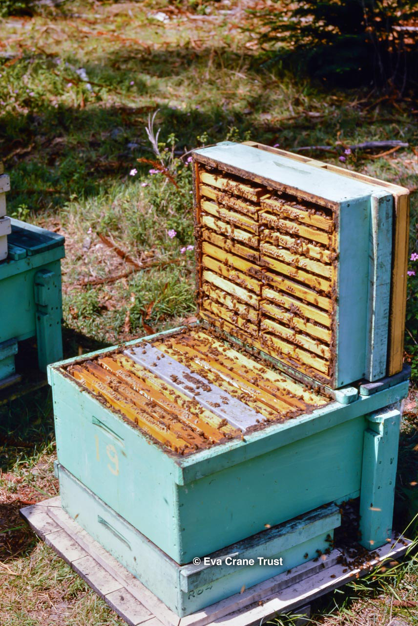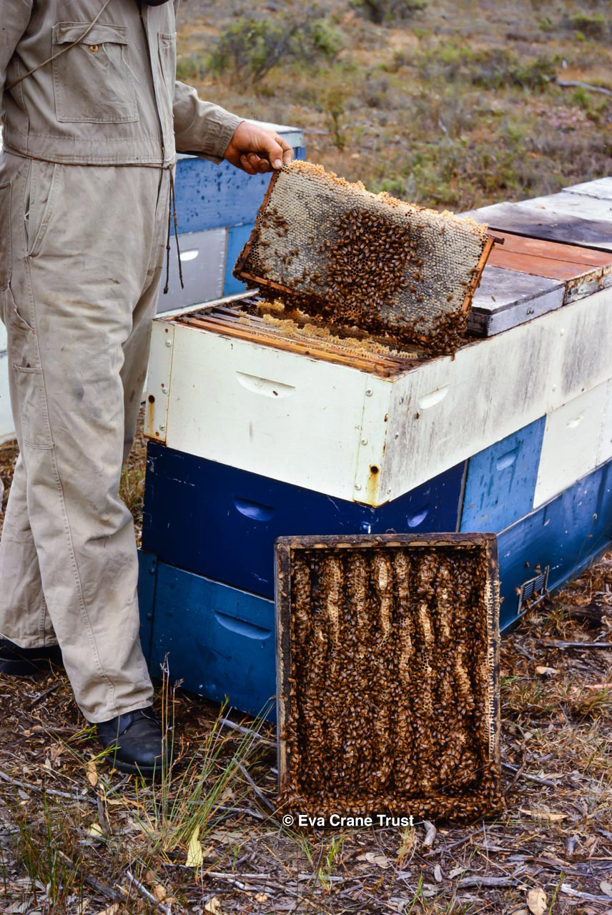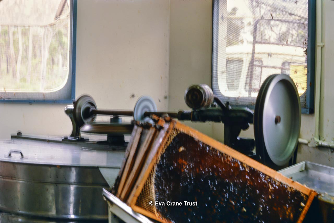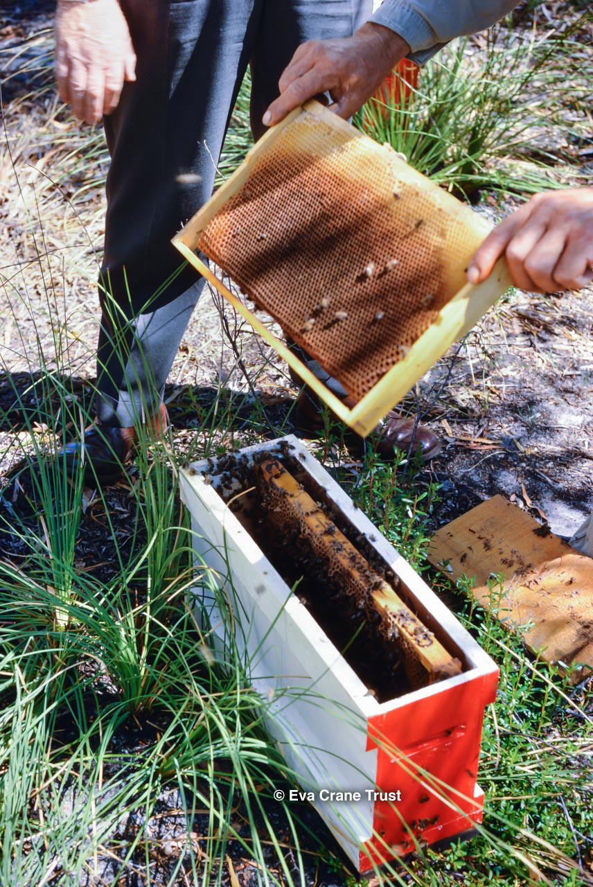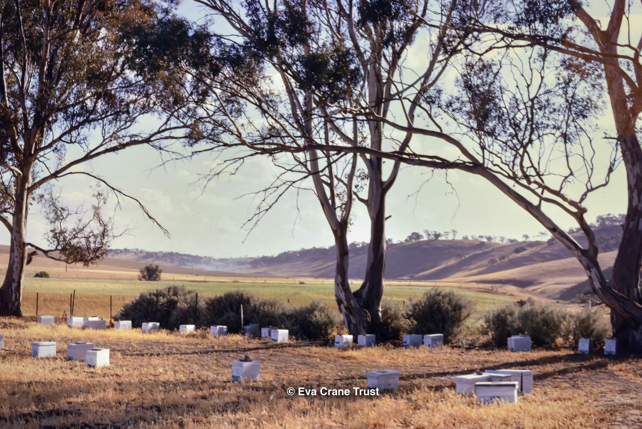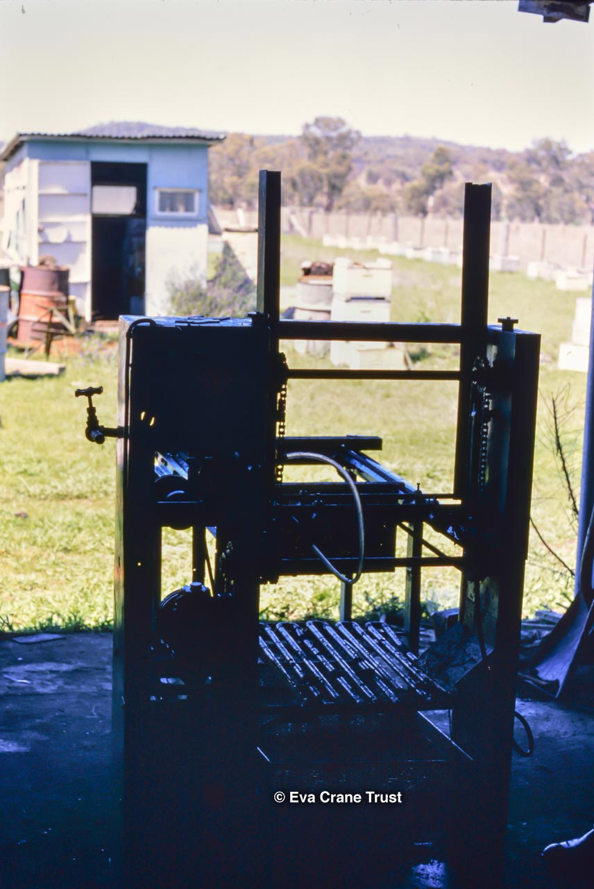 AUSTRALIA, Queensland , 1967, Norman Rice showing hive with half-frames. Irrigated alfalfa.
