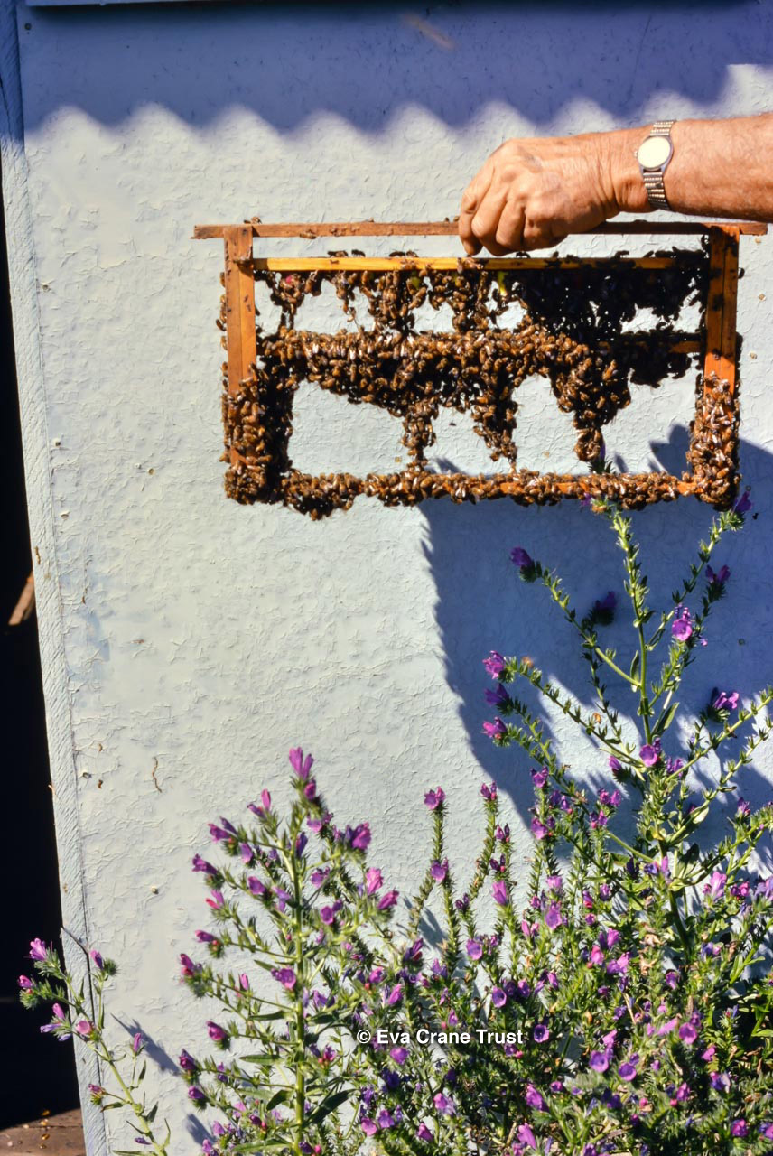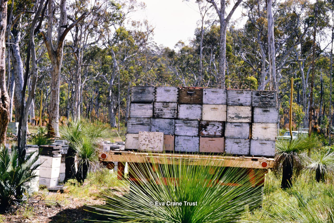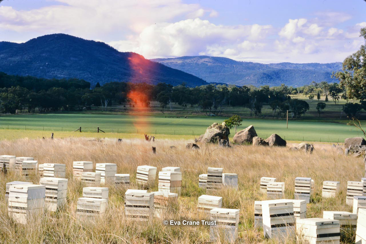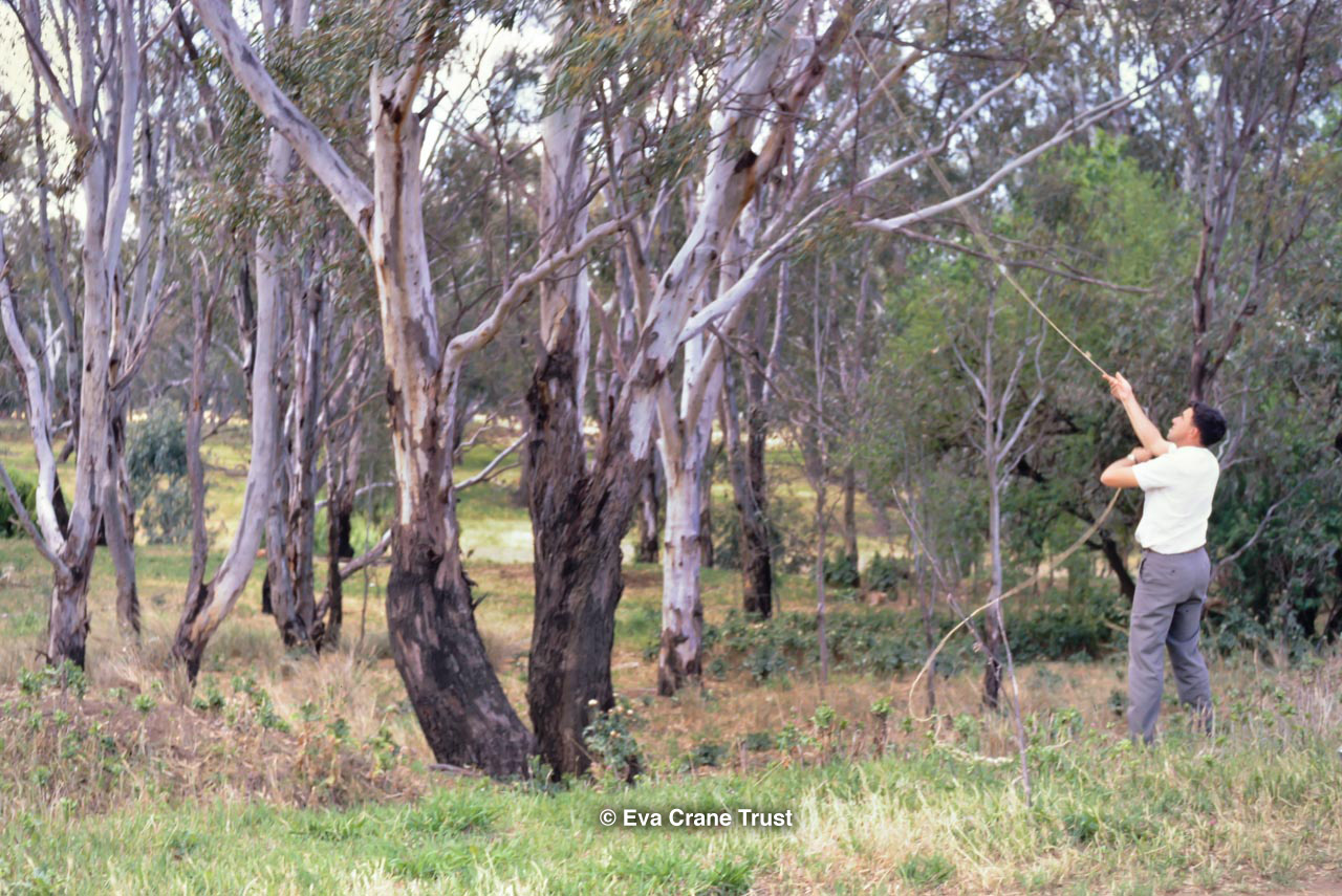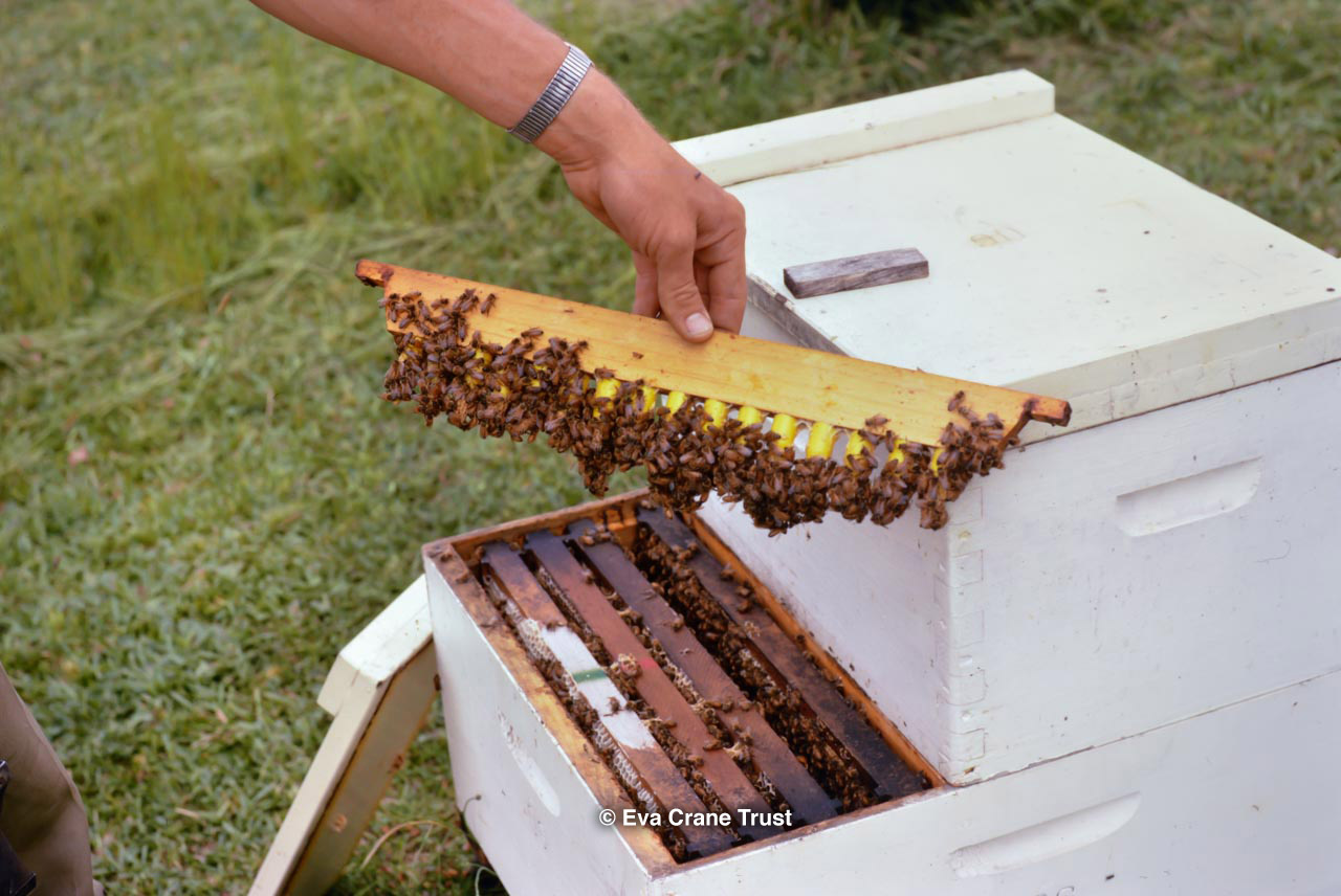 AUSTRALIA, Queensland , 1967, Norman Rice showing hive with half-frames. Irrigated alfalfa.