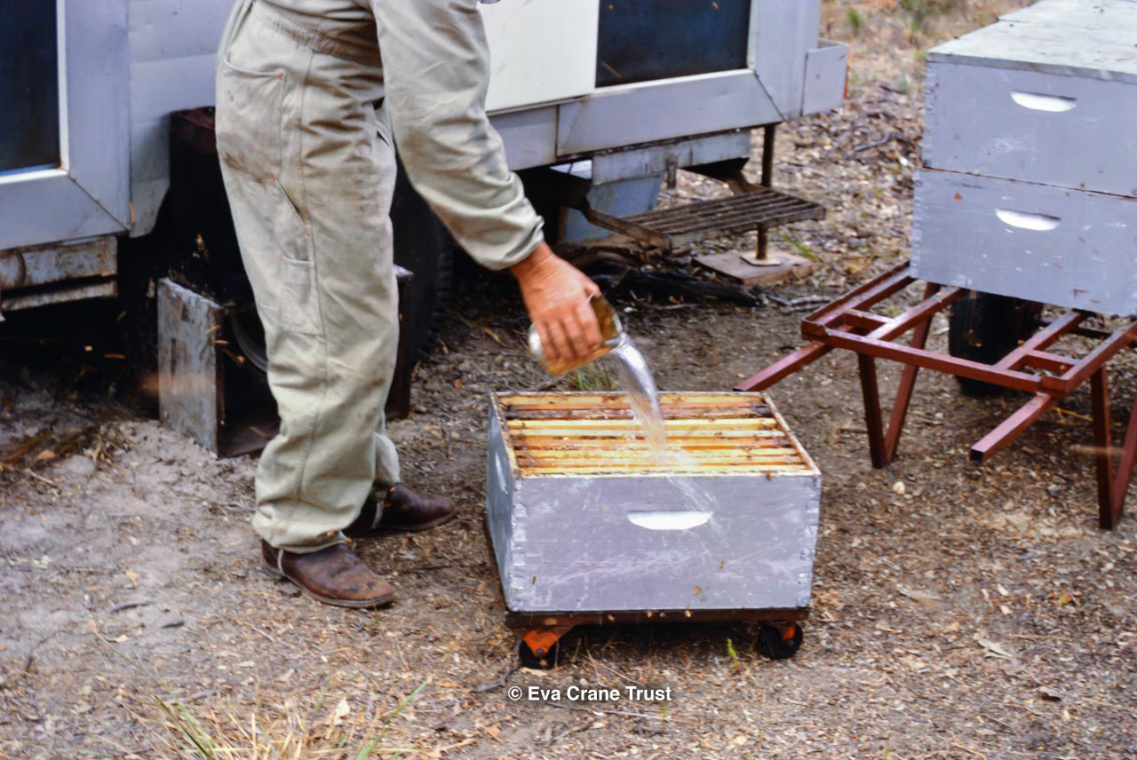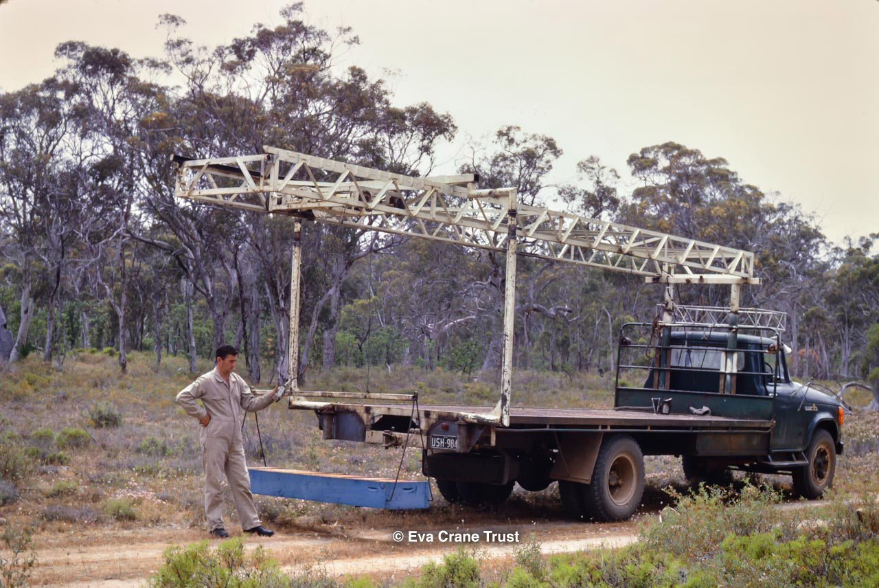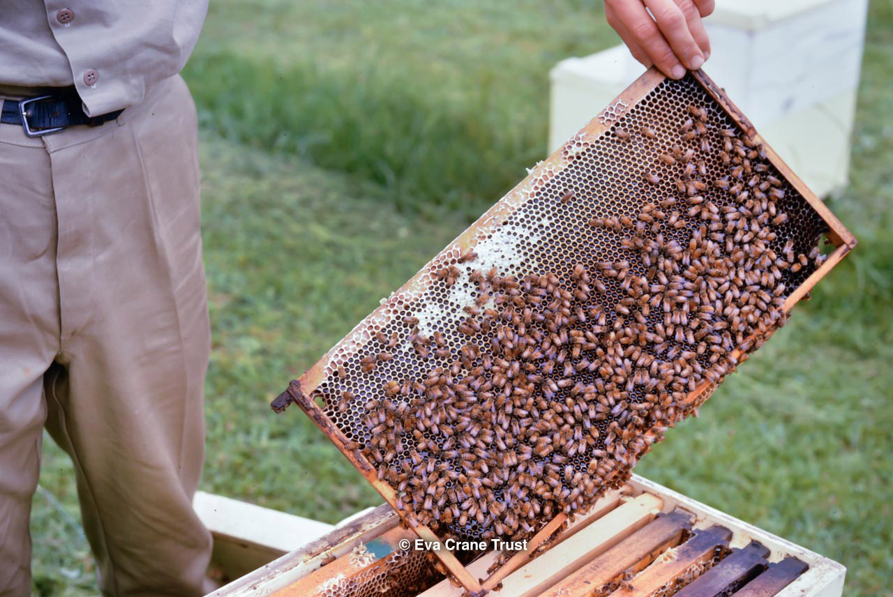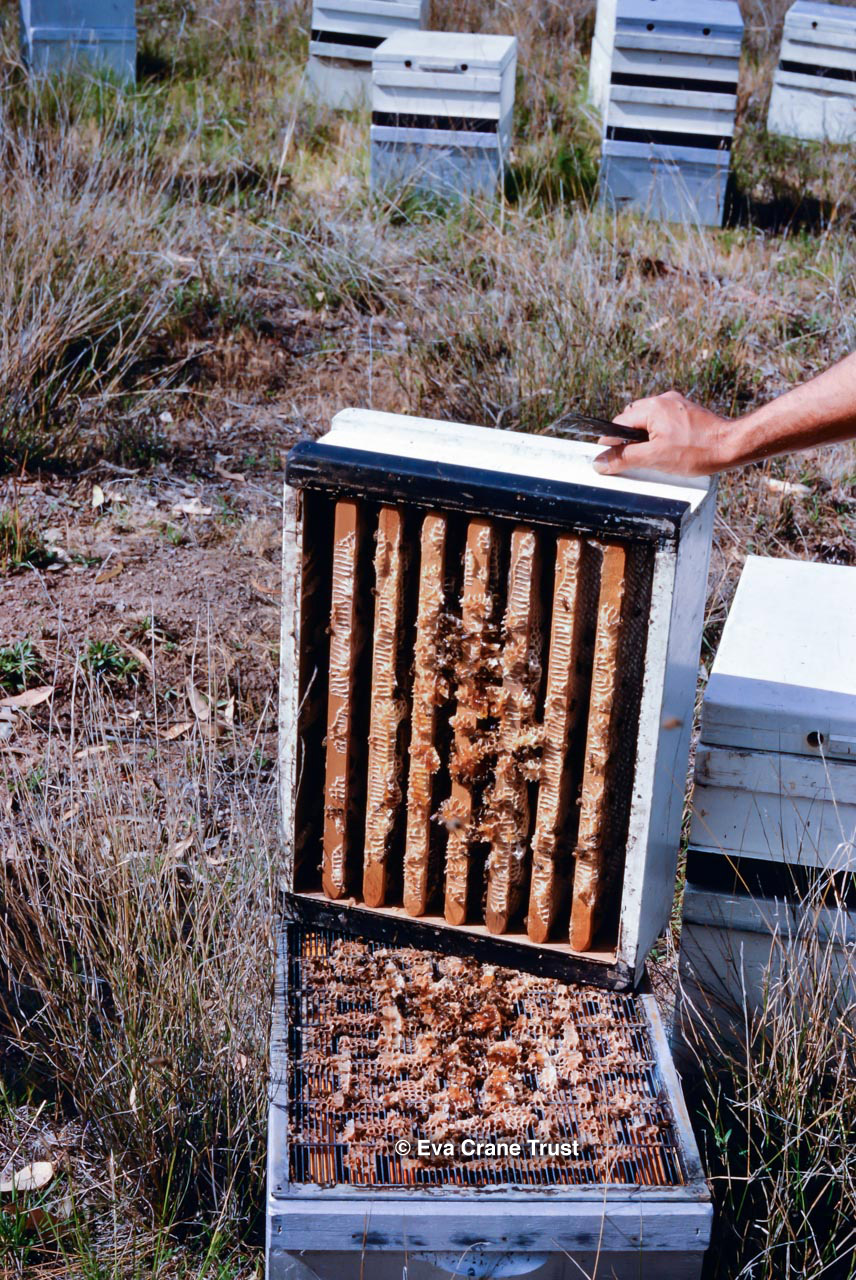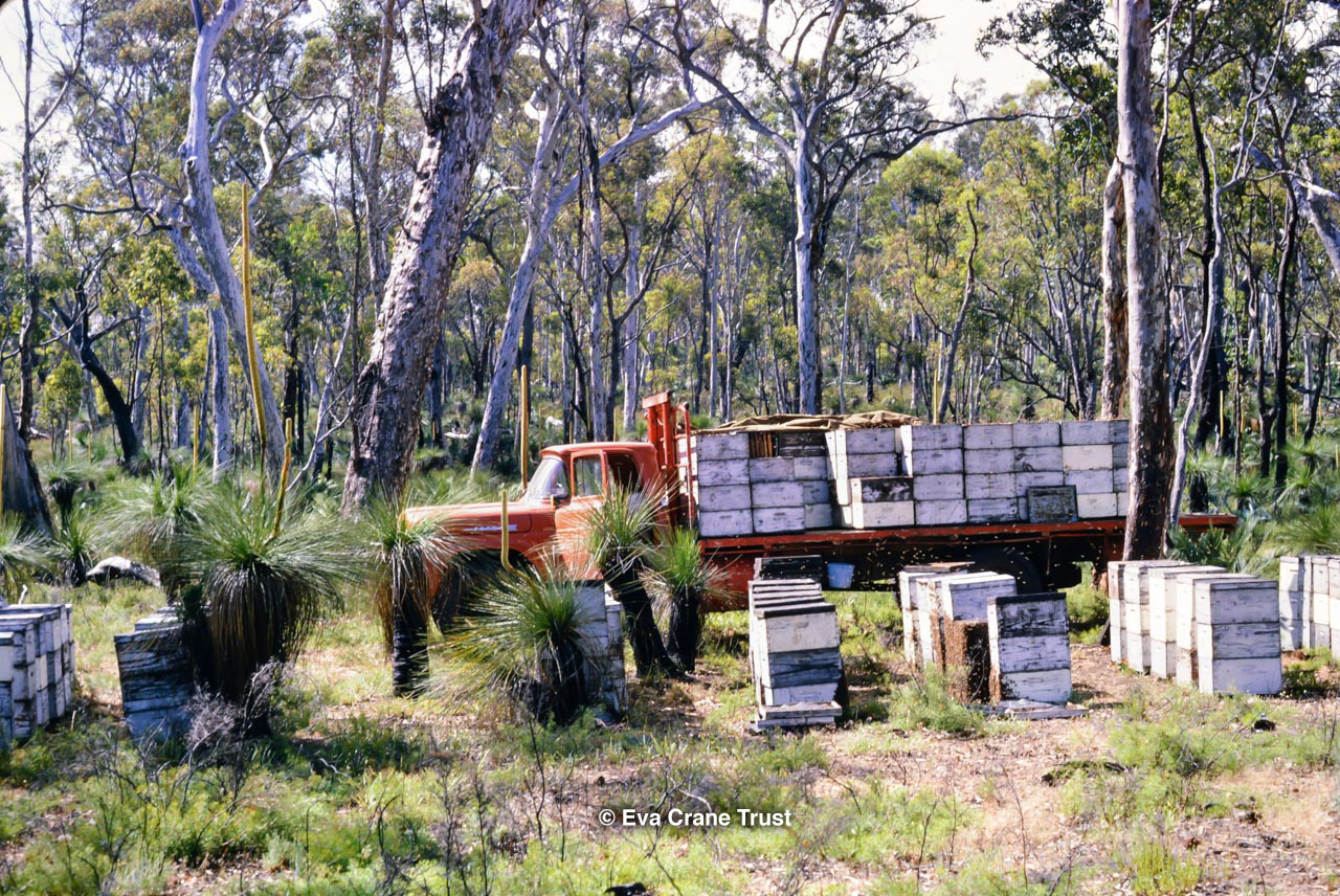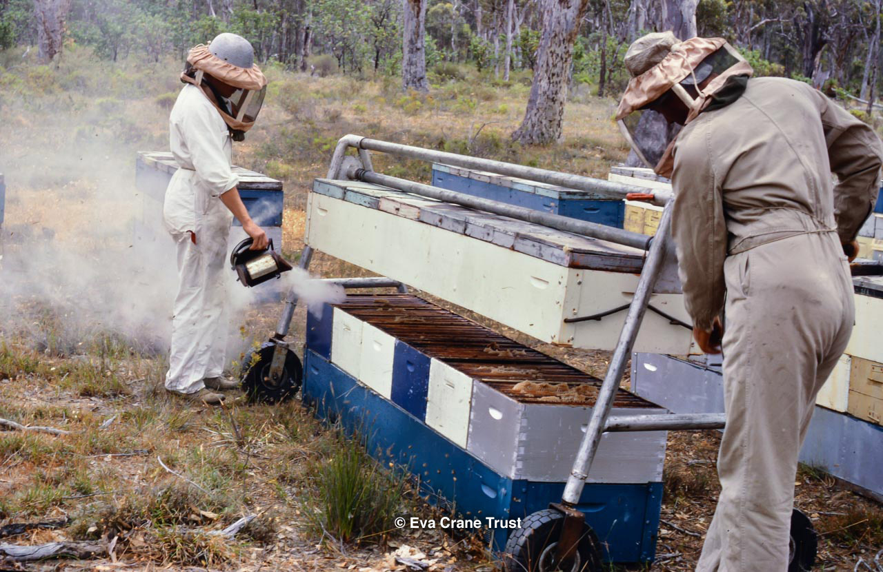 AUSTRALIA, Queensland , 1967, Norman Rice showing hive with half-frames. Irrigated alfalfa.