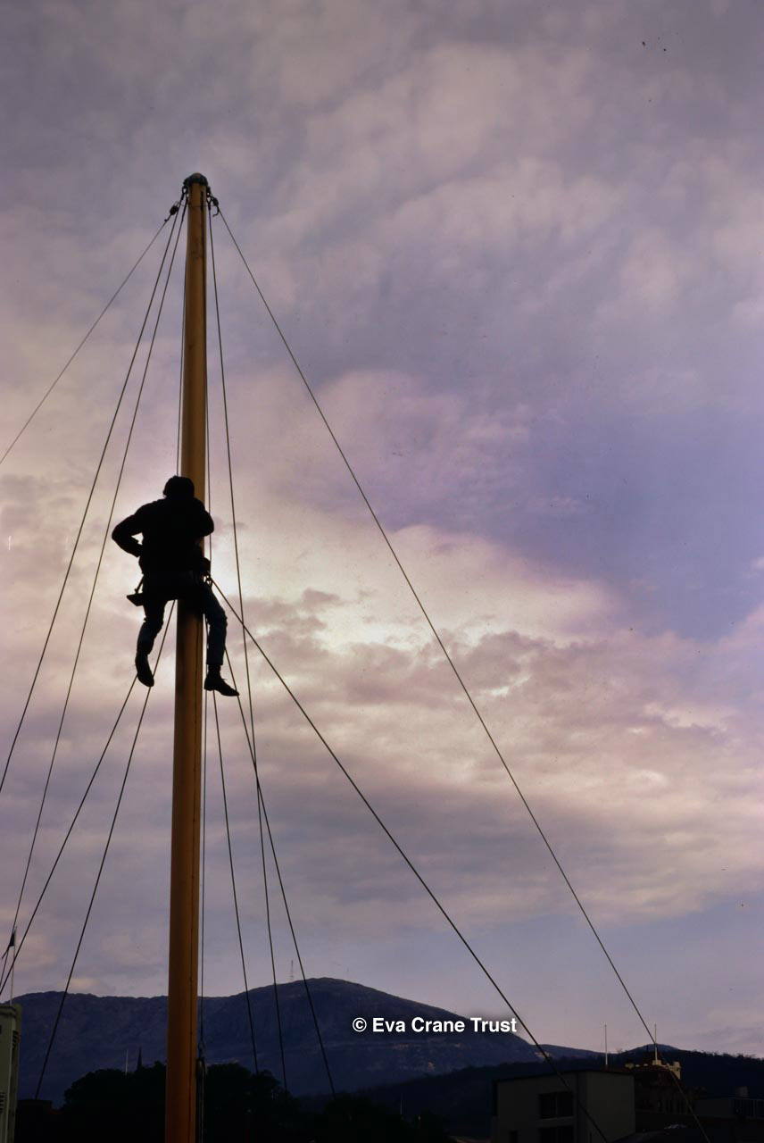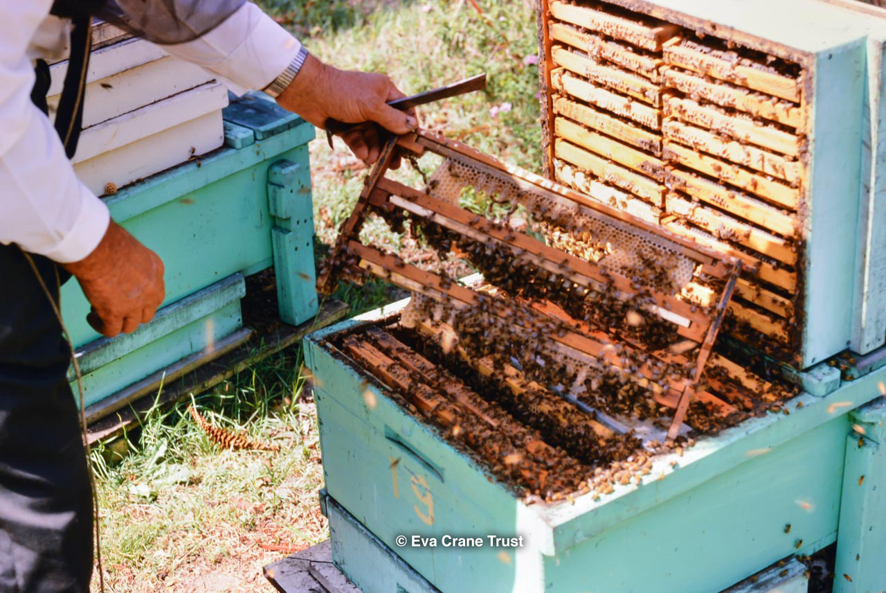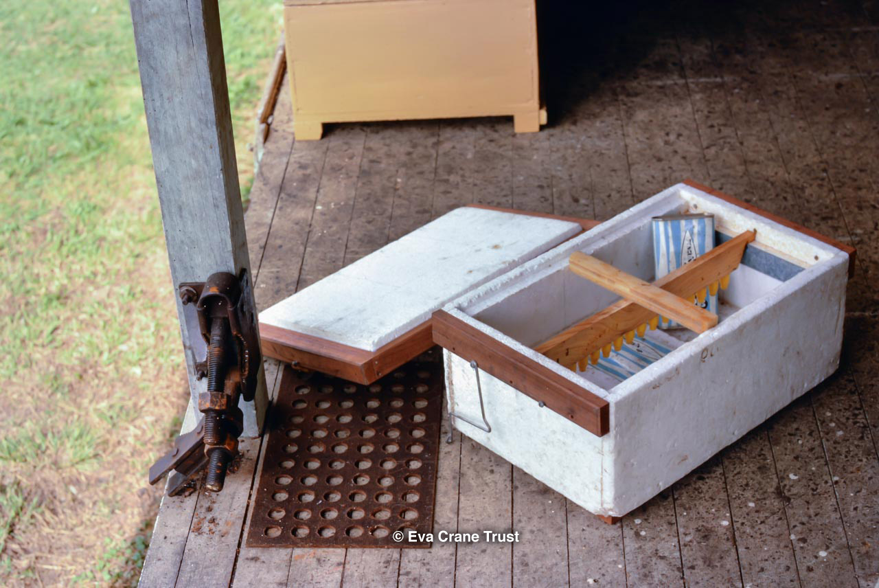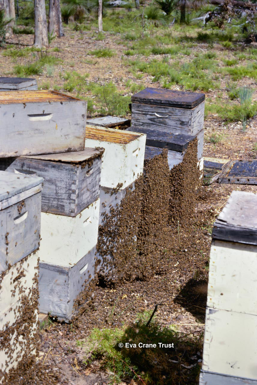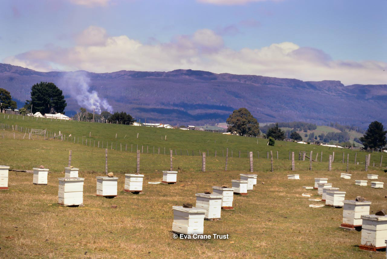 AUSTRALIA, Queensland , 1967, Norman Rice showing hive with half-frames. Irrigated alfalfa.