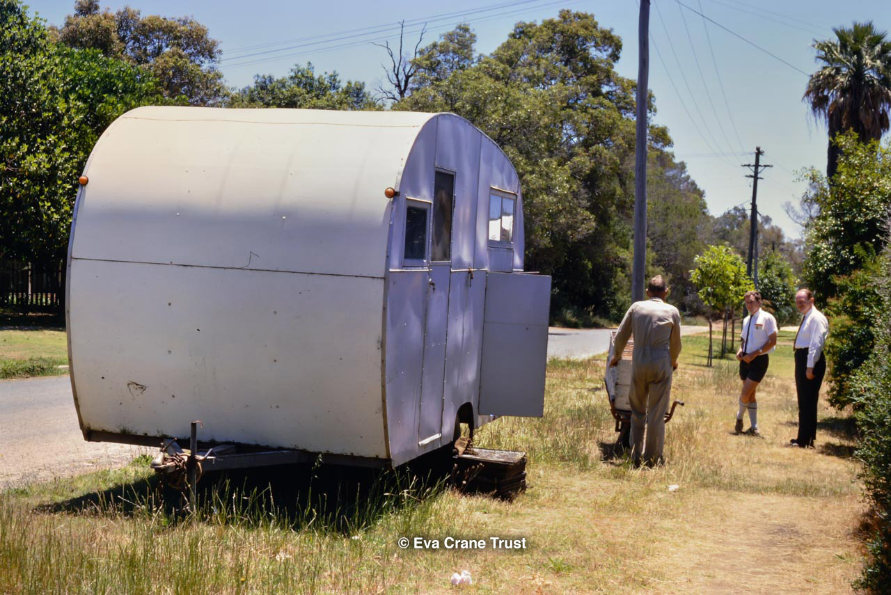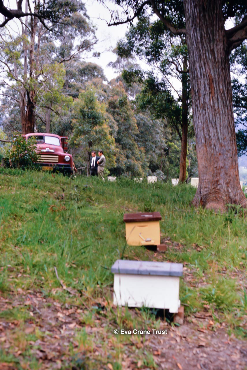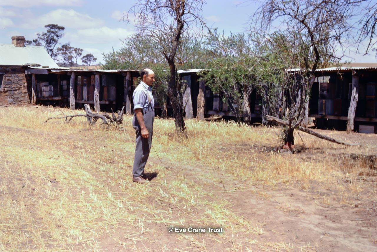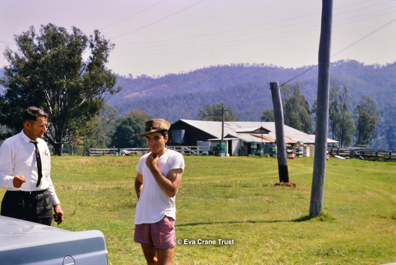 AUSTRALIA, 1967, Western Australia, Trip to Manjimup, Mr. O'Keefe in his shorts and apiary.
