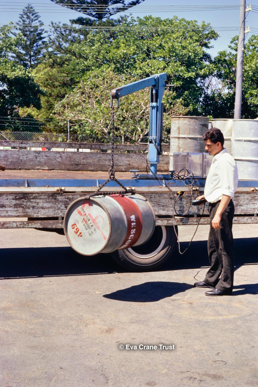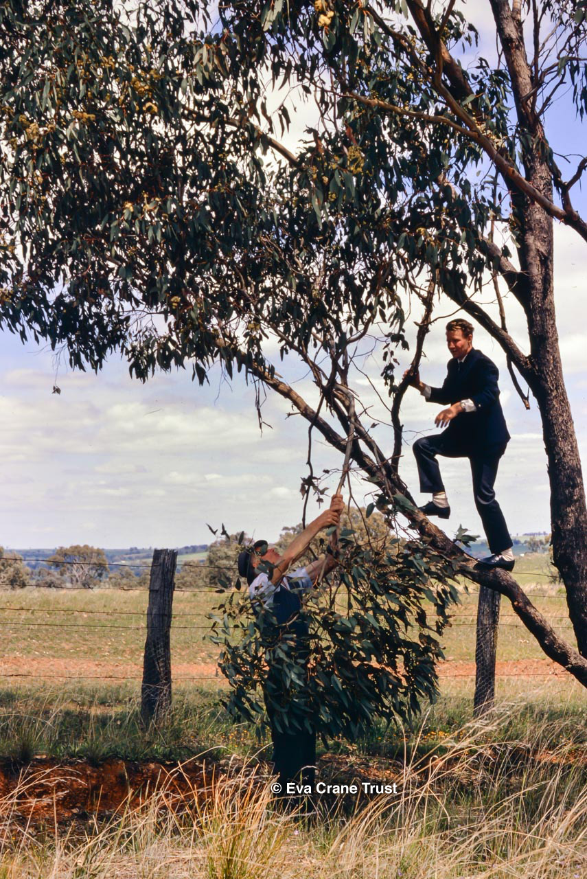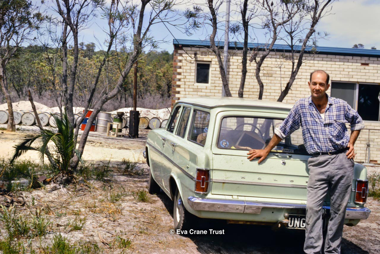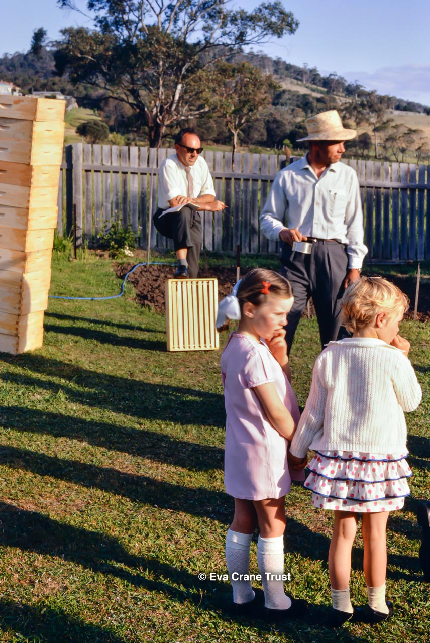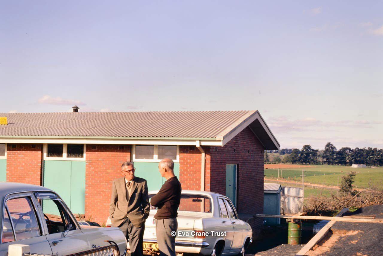 AUSTRALIA, 1967, Western Australia, Trip to Manjimup, Mr. O'Keefe in his shorts and apiary.