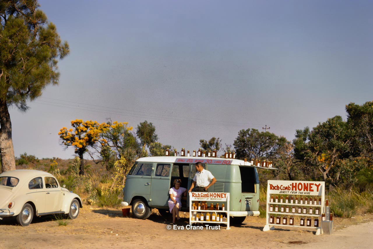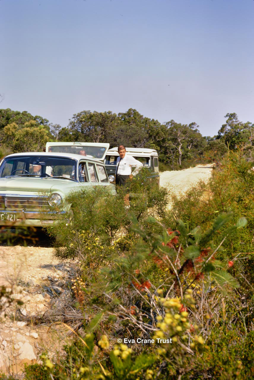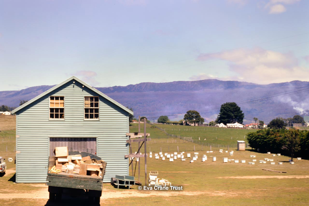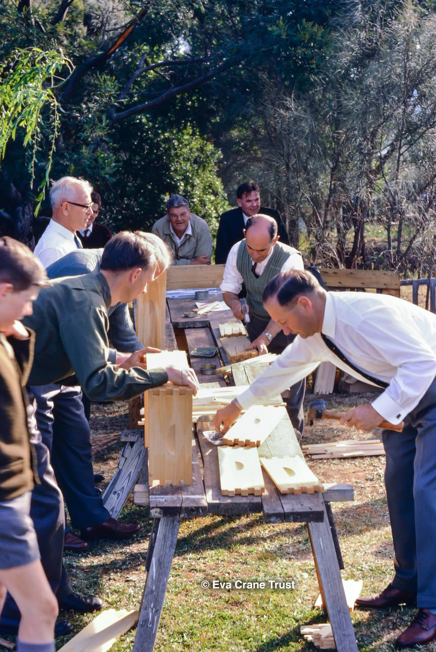 AUSTRALIA, 1967, Western Australia, Trip to Manjimup, Mr. O'Keefe in his shorts and apiary.