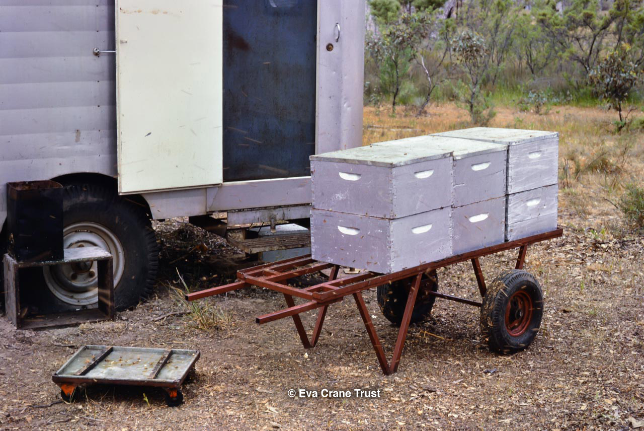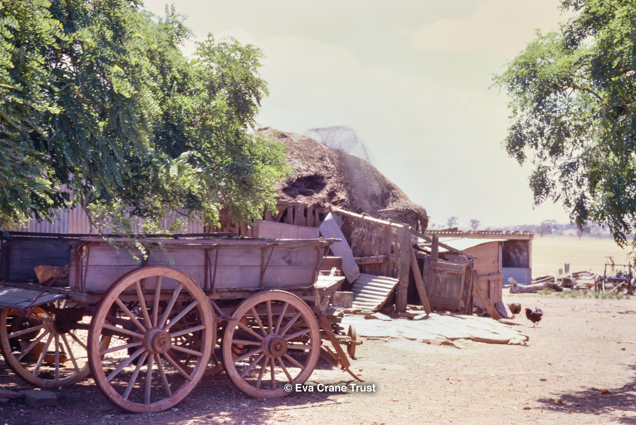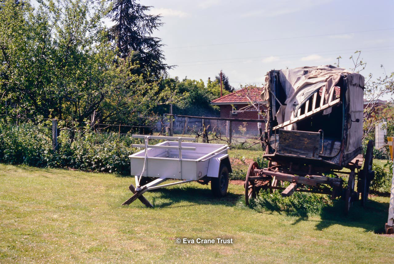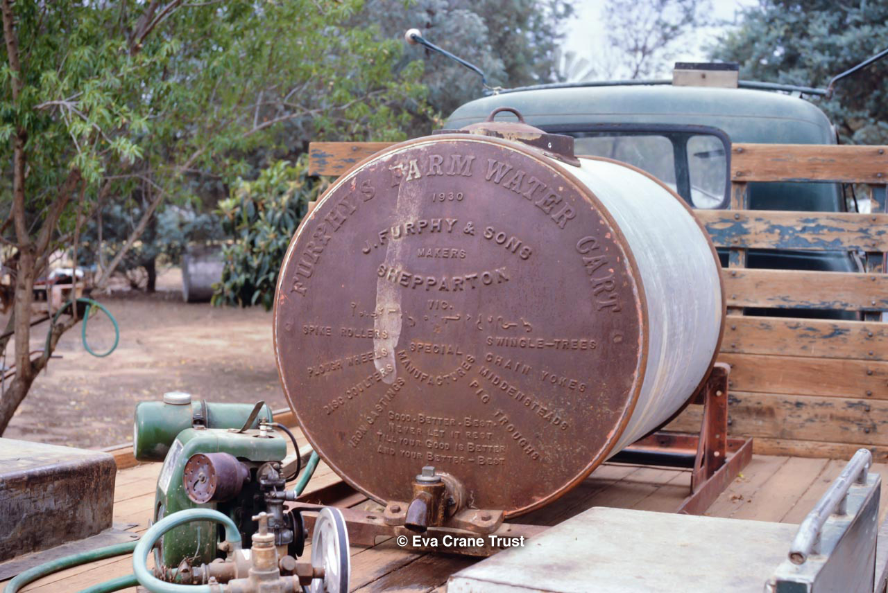 AUSTRALIA, Victoria, 1967, Old-fashioned water cart in in Fred Sargent's apiary Boorahaman.