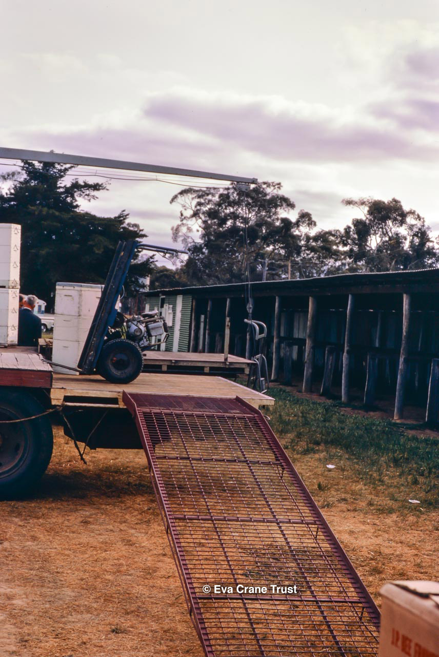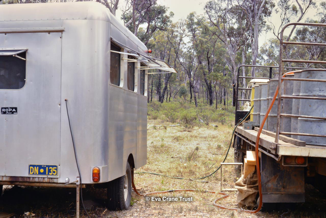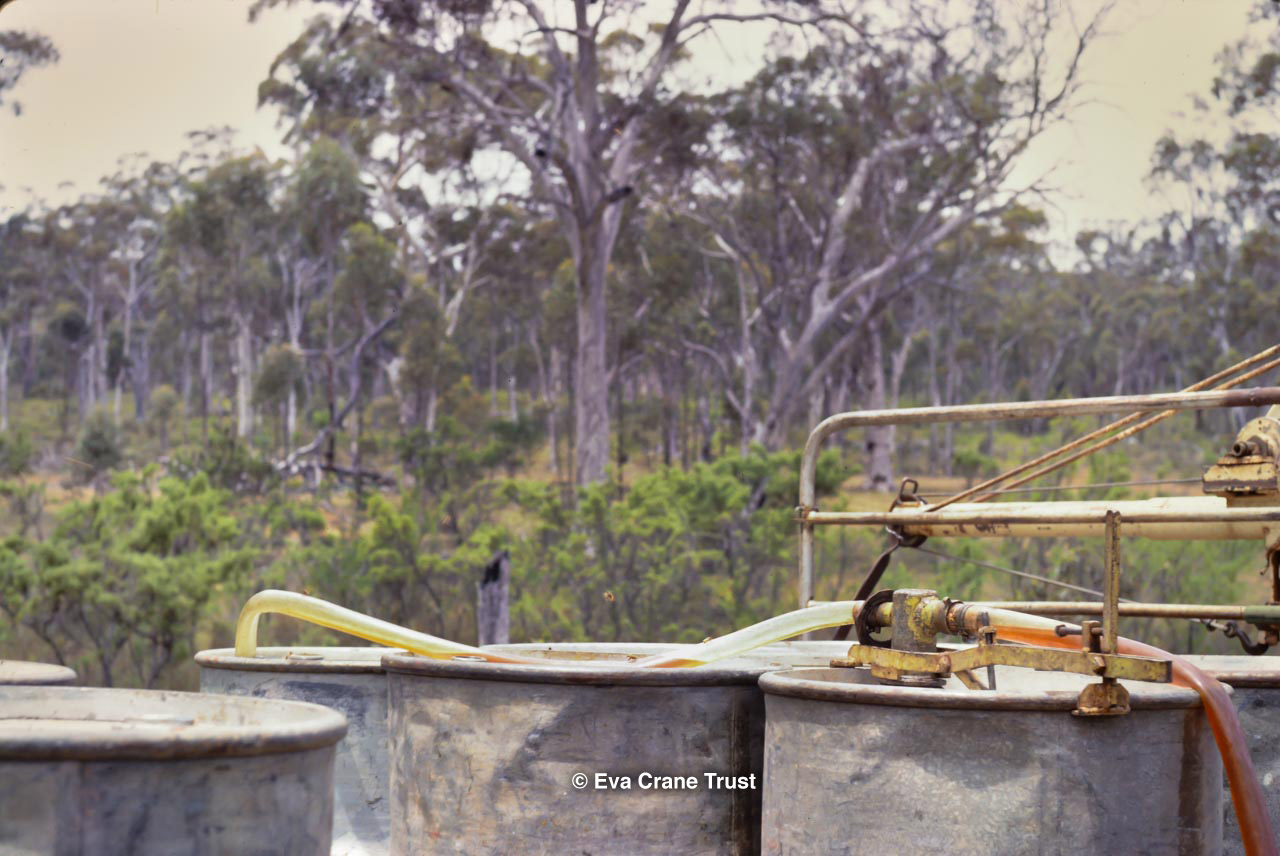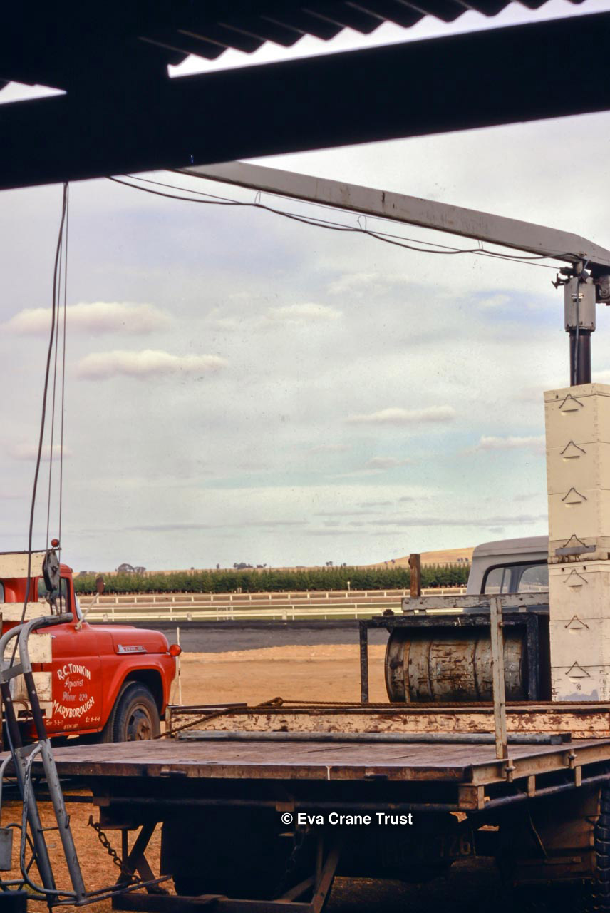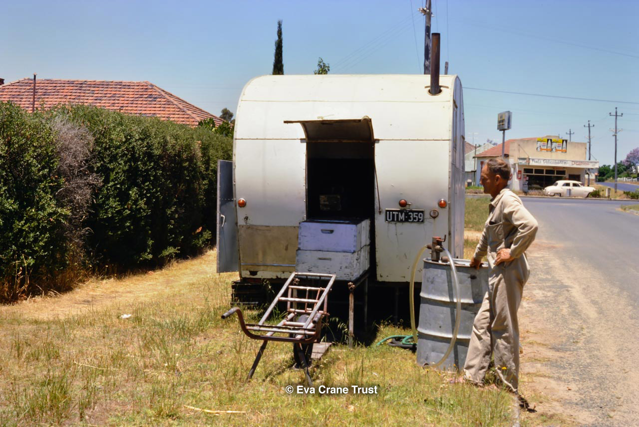 AUSTRALIA, Victoria, 1967, Old-fashioned water cart in in Fred Sargent's apiary Boorahaman.