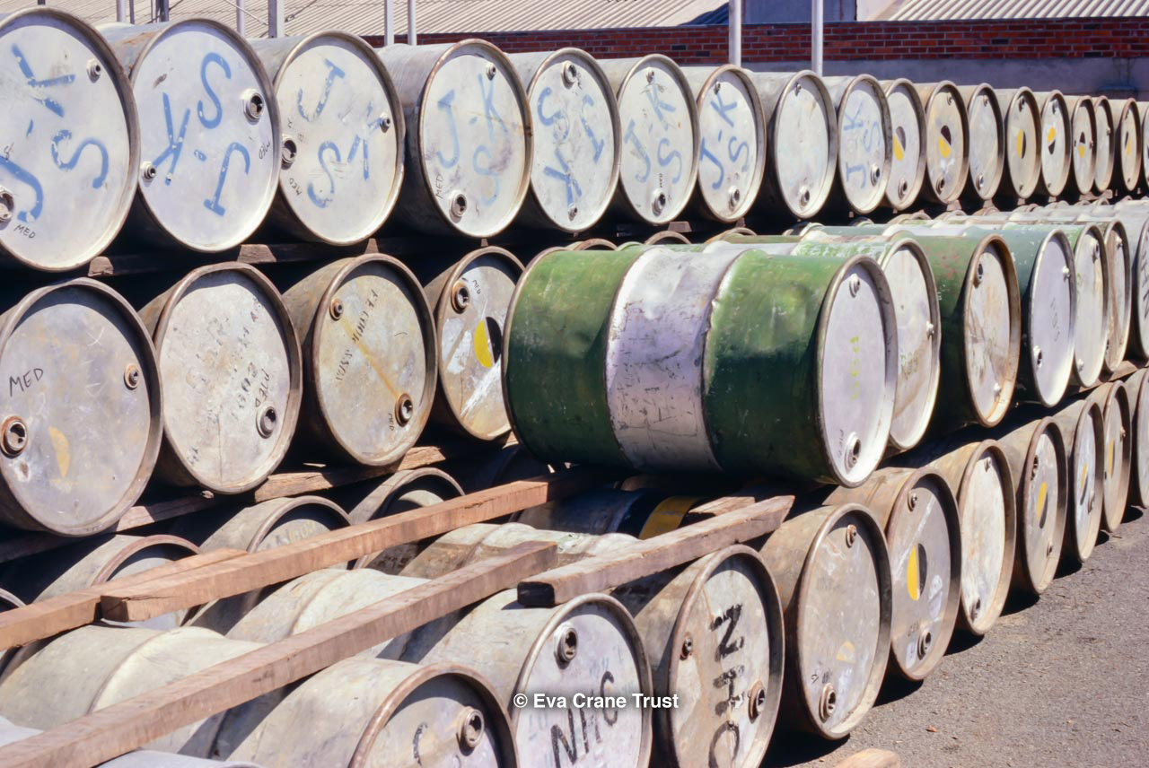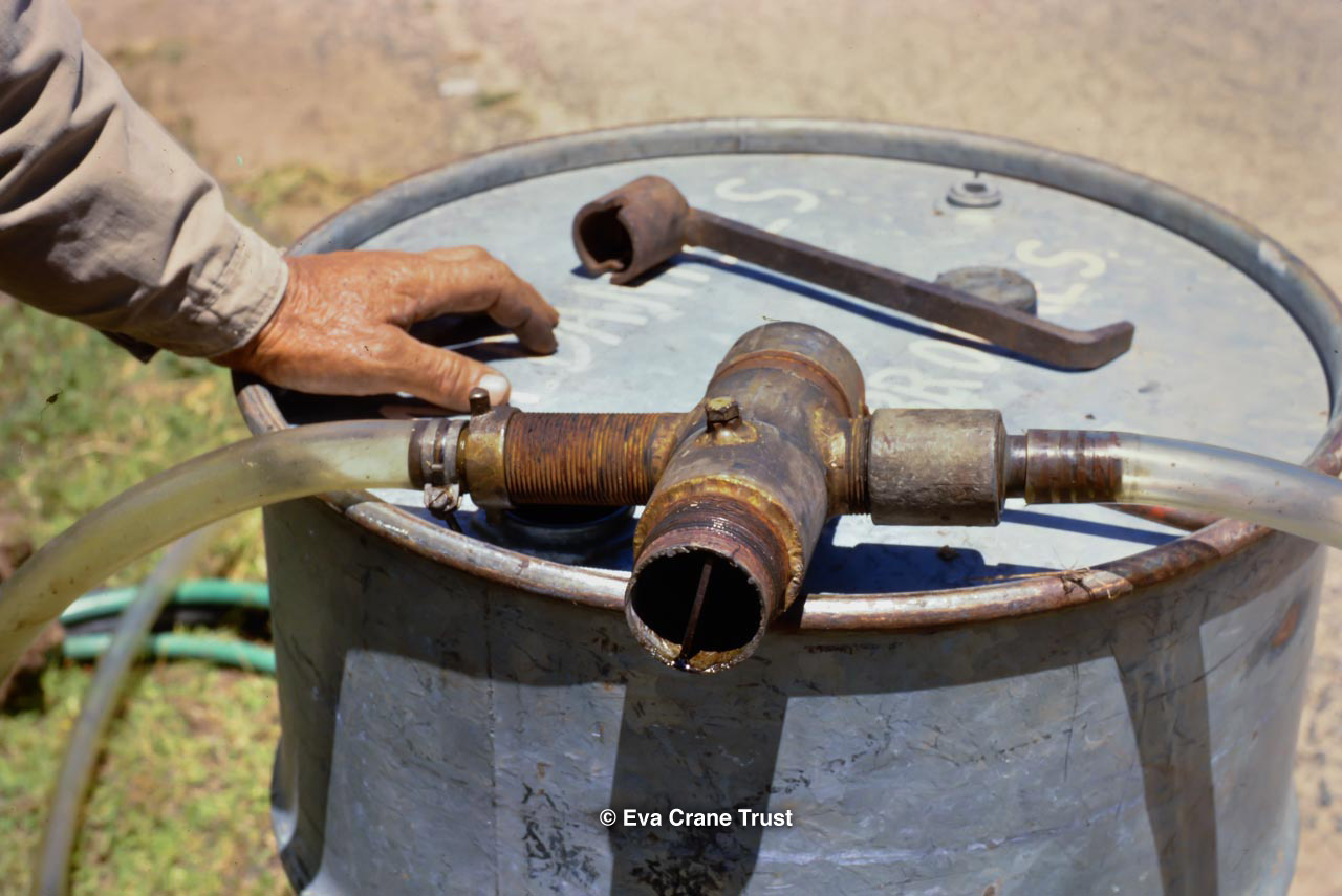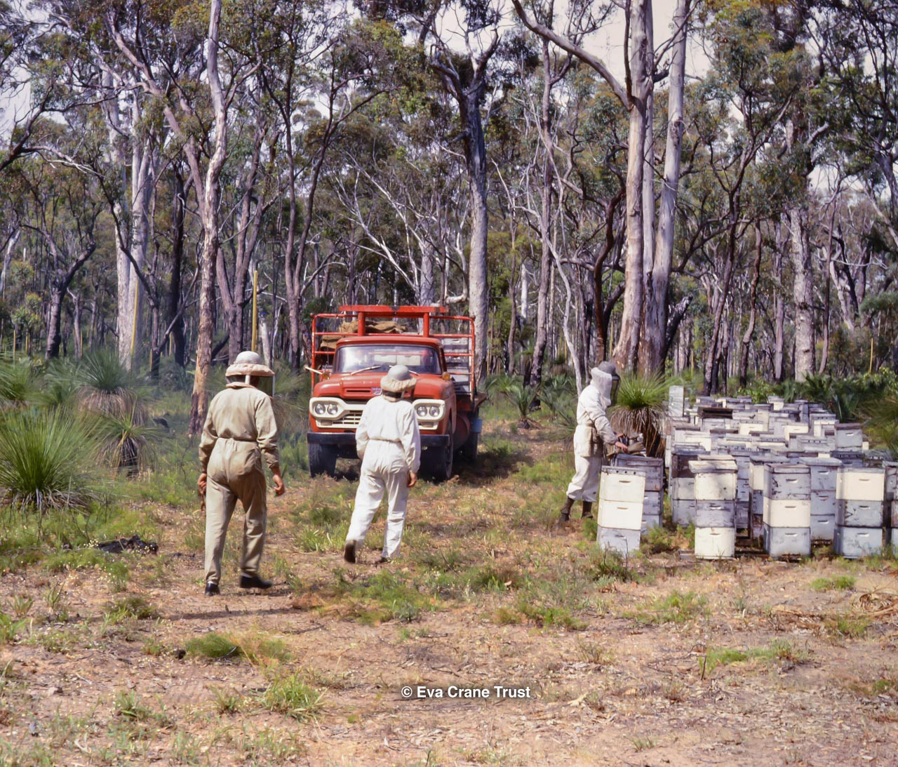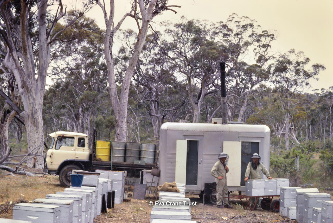 AUSTRALIA, Victoria, 1967, Old-fashioned water cart in in Fred Sargent's apiary Boorahaman.