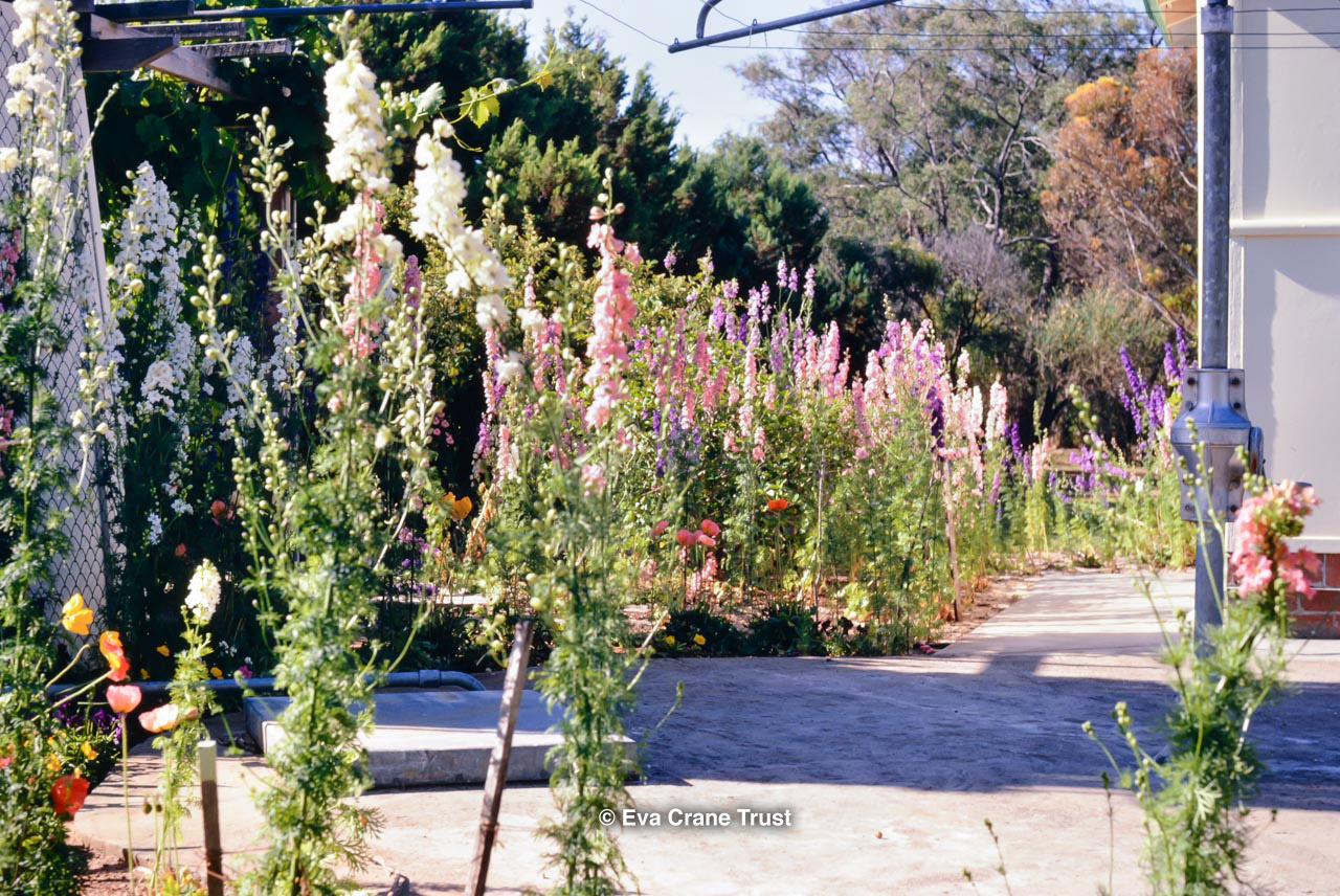 AUSTRALIA, 1967, Western Australia, Trip to Manjimup, Larkspurs in Mr E.C. Fuller's garden.