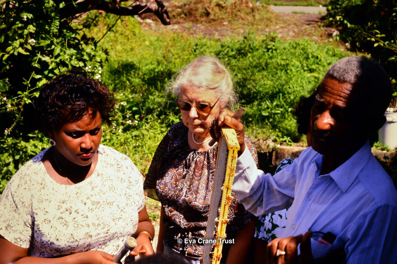 WEST INDIES, Barbados, 1988, TV man filming in apiary of of BKA President.