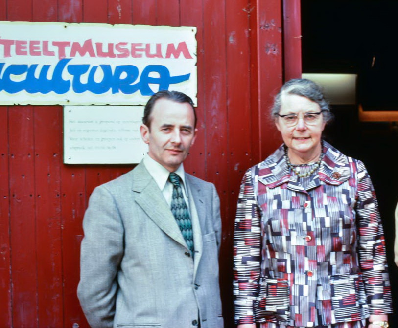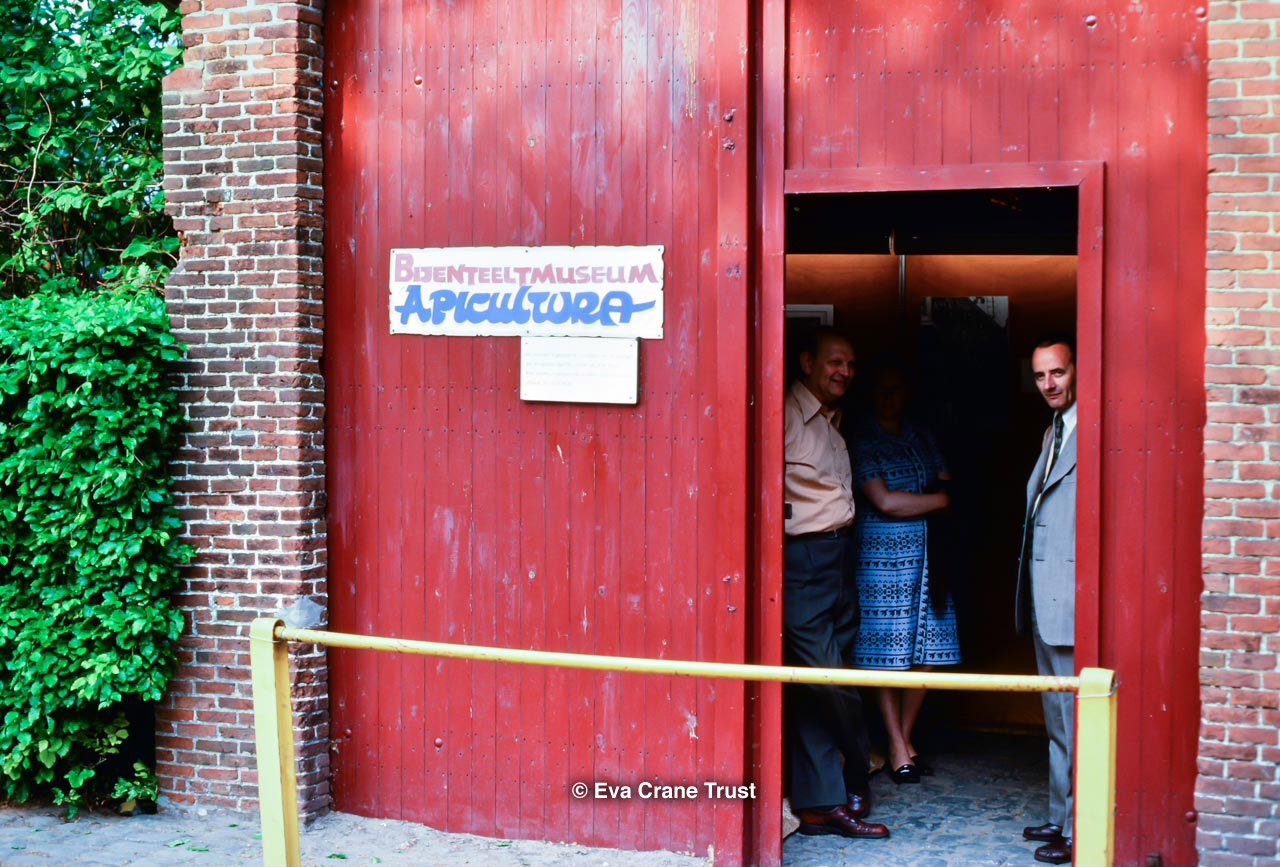 BELGIUM AND NETHERLANDS, 1976 Belgium Beekeeping Museums (2) Kalmthout, Entrance with Dr Van Laere and Eva Crane