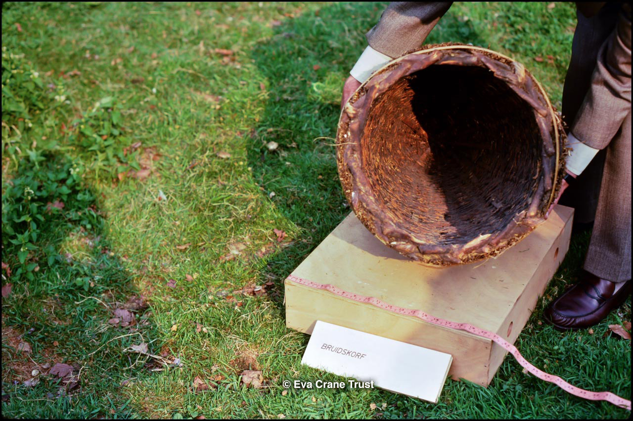 BELGIUM, 16976, Belgium Beekeeping Museums (2) Kalmthout, Mr Schoof carrying ?swarm container.
