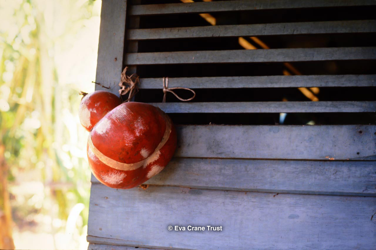 Costa Rica 1991, Nicoya peninsula, Ends of two hives showing gourd closures.