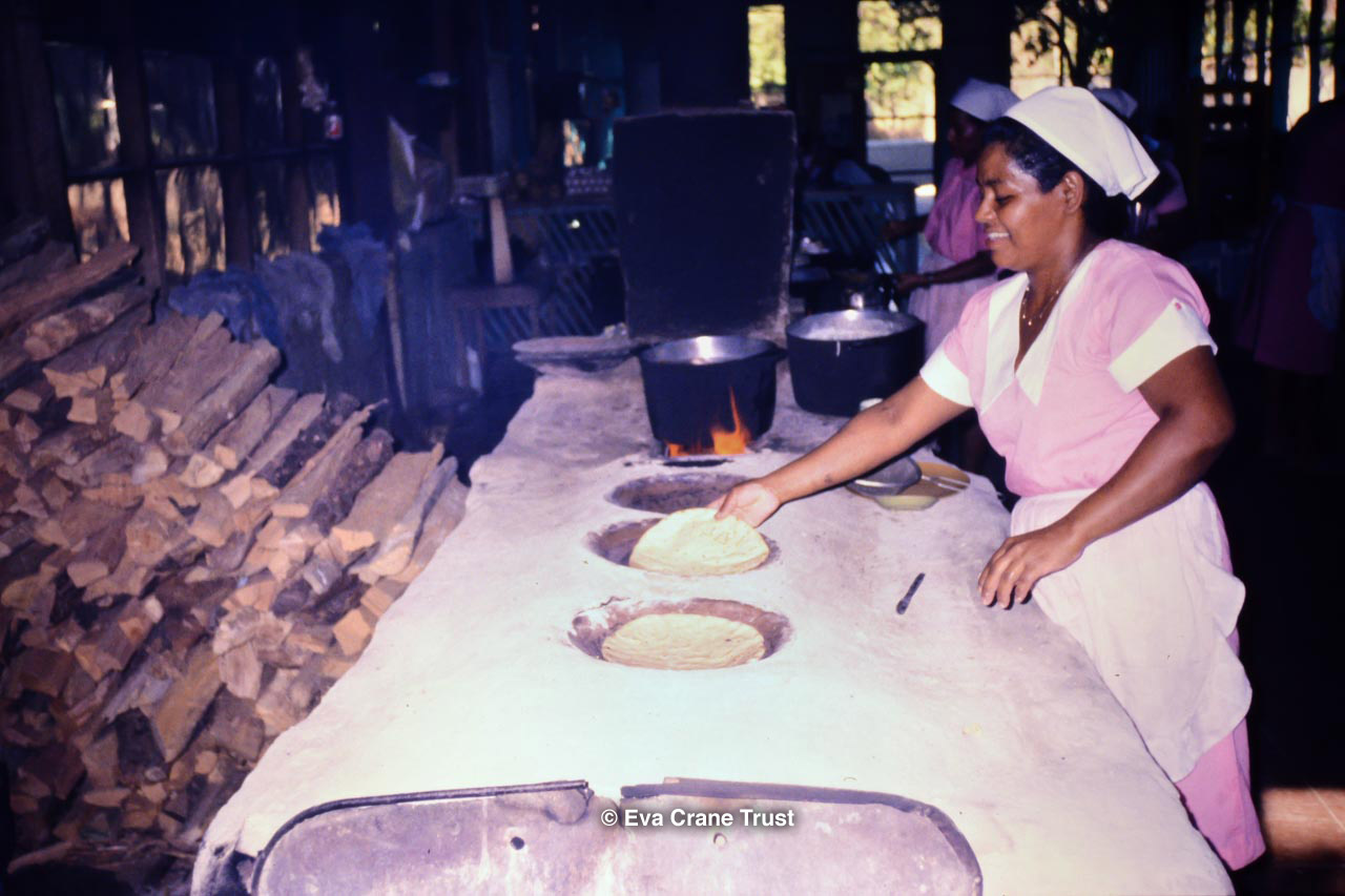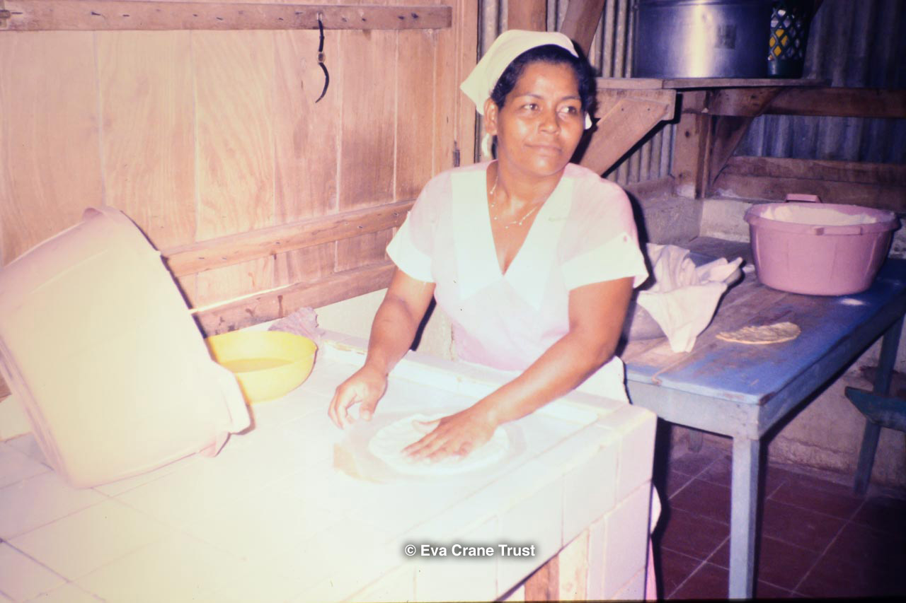 Costa Rica 1991, Nicoya peninsula, Santa Cruz. Cooking tortillas: one of the cooks.