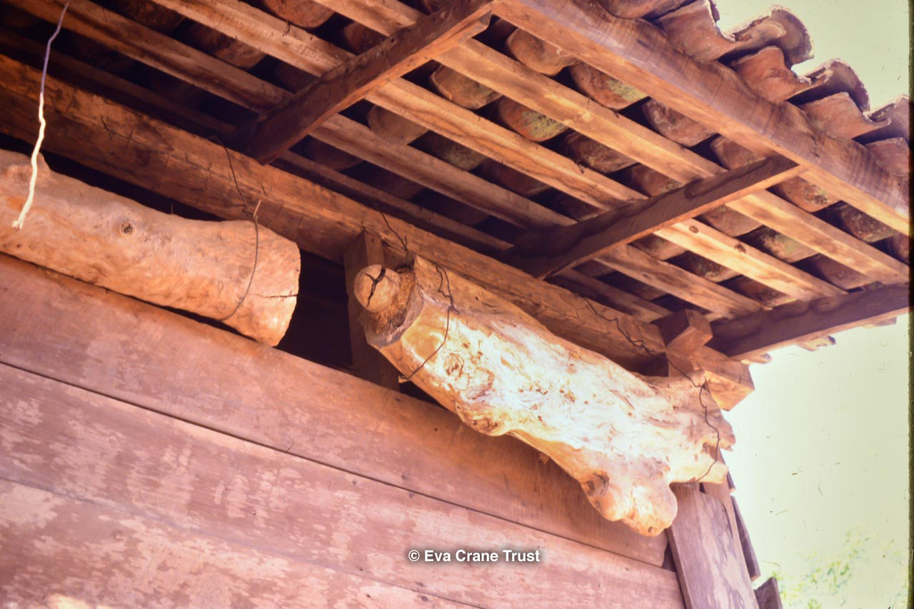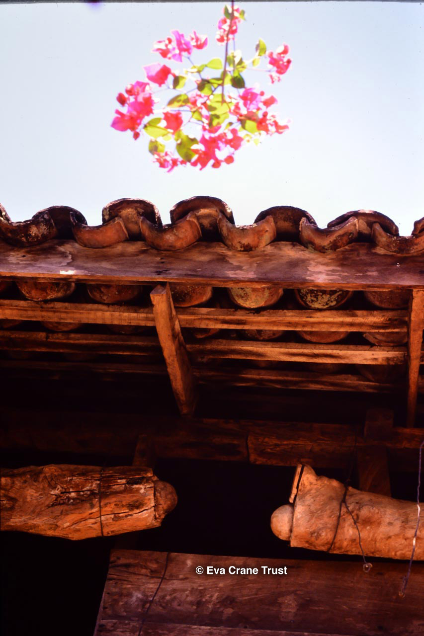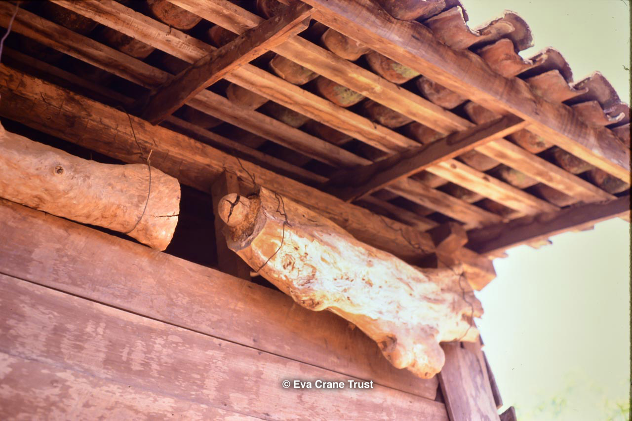 Costa Rica, 1991, Hives of stingless bees north of Heredia, Part of shelter for many hives.