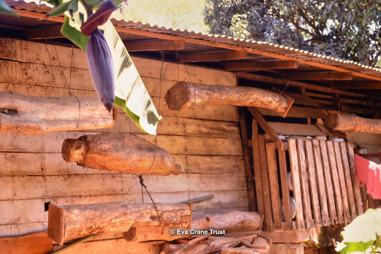 Costa Rica 1991, Nicoya peninsula, End view of wall of house at Hojancha where hives hang.