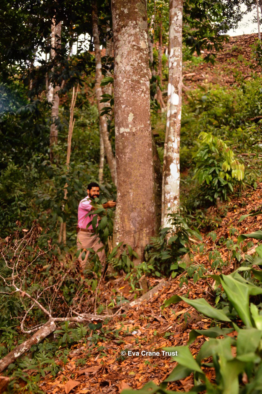 Costa Rica 1991, Hives of stingless bees north of Heredia, Flowering trees and ?shelter for bees.