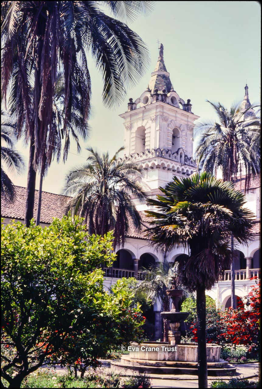 ECUADOR, 1983, La Merced with church tower.