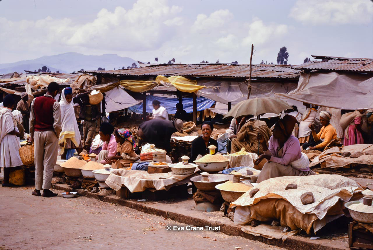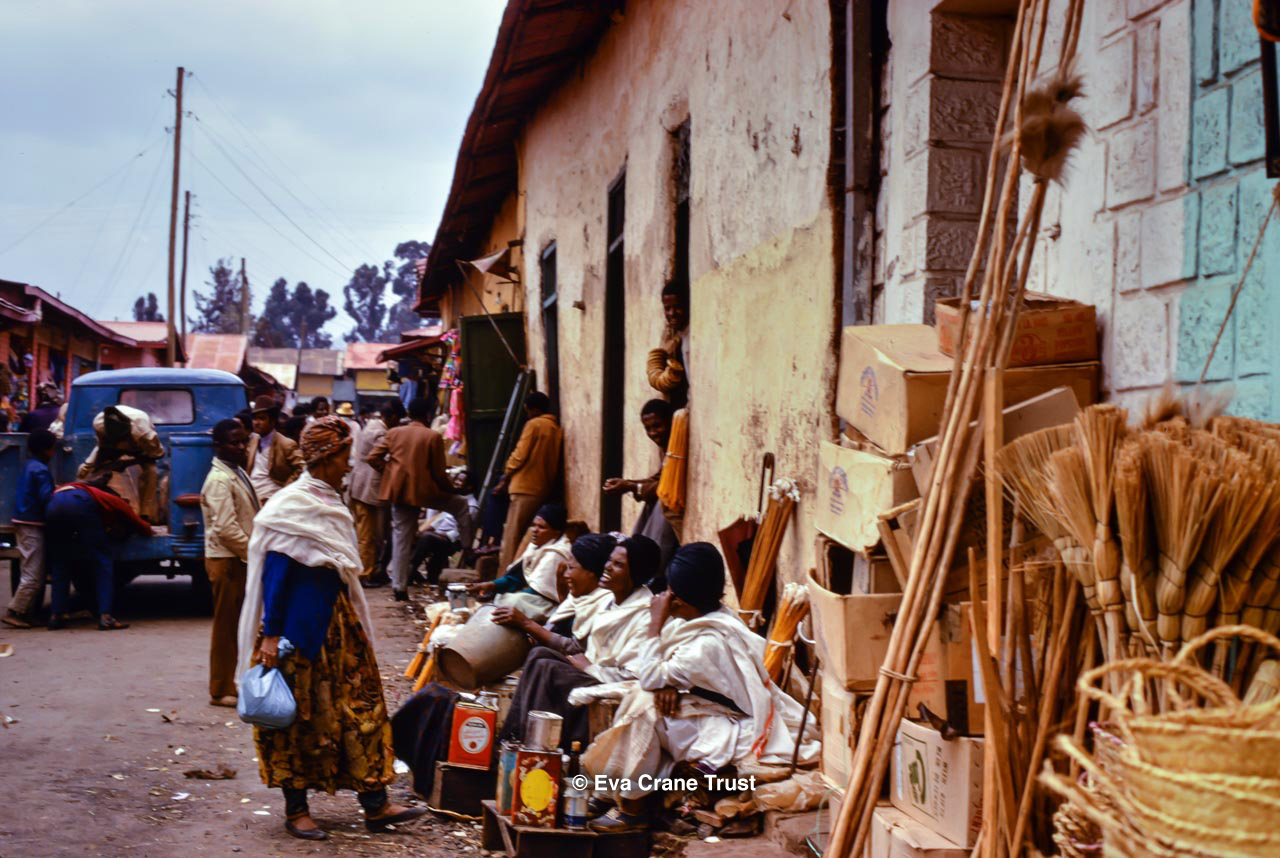 ETHIOPIA, Sept / Oct 1973, Addis market - foods? approaching honey market.