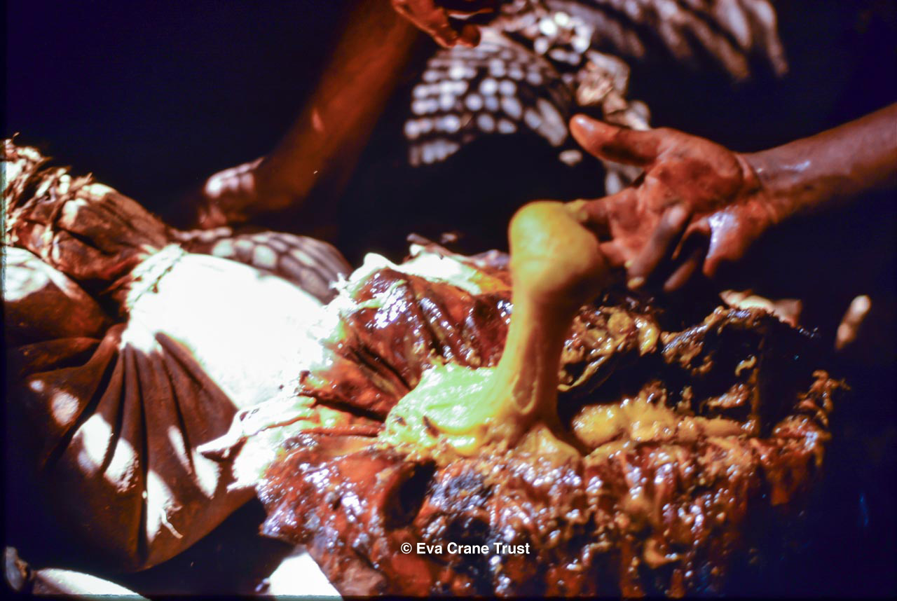 ETHIOPIA, Sept / Oct 1973, Bees getting at contents of opened goatskins.