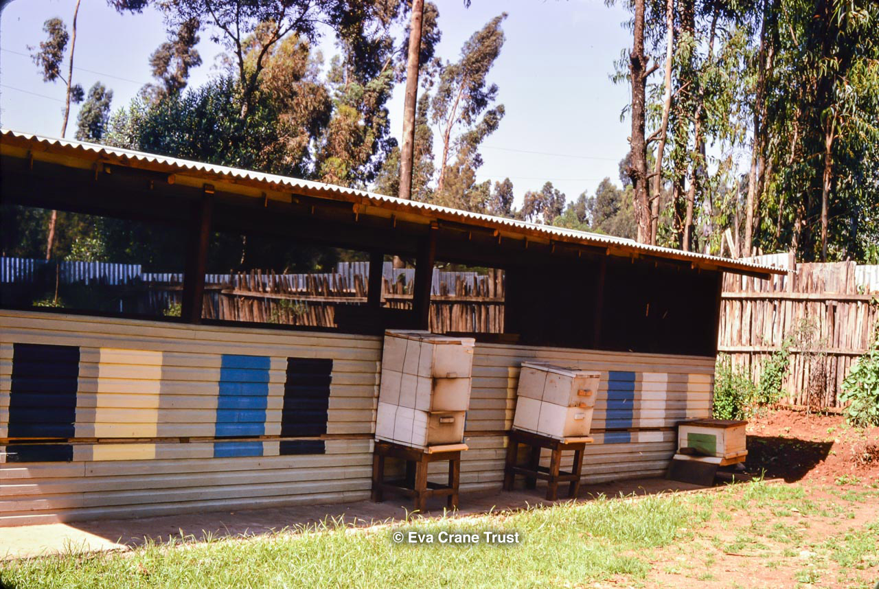 ETHIOPIA, Sept / Oct 1973, Holetta Beekeeping Station, Bee house opposite main building.