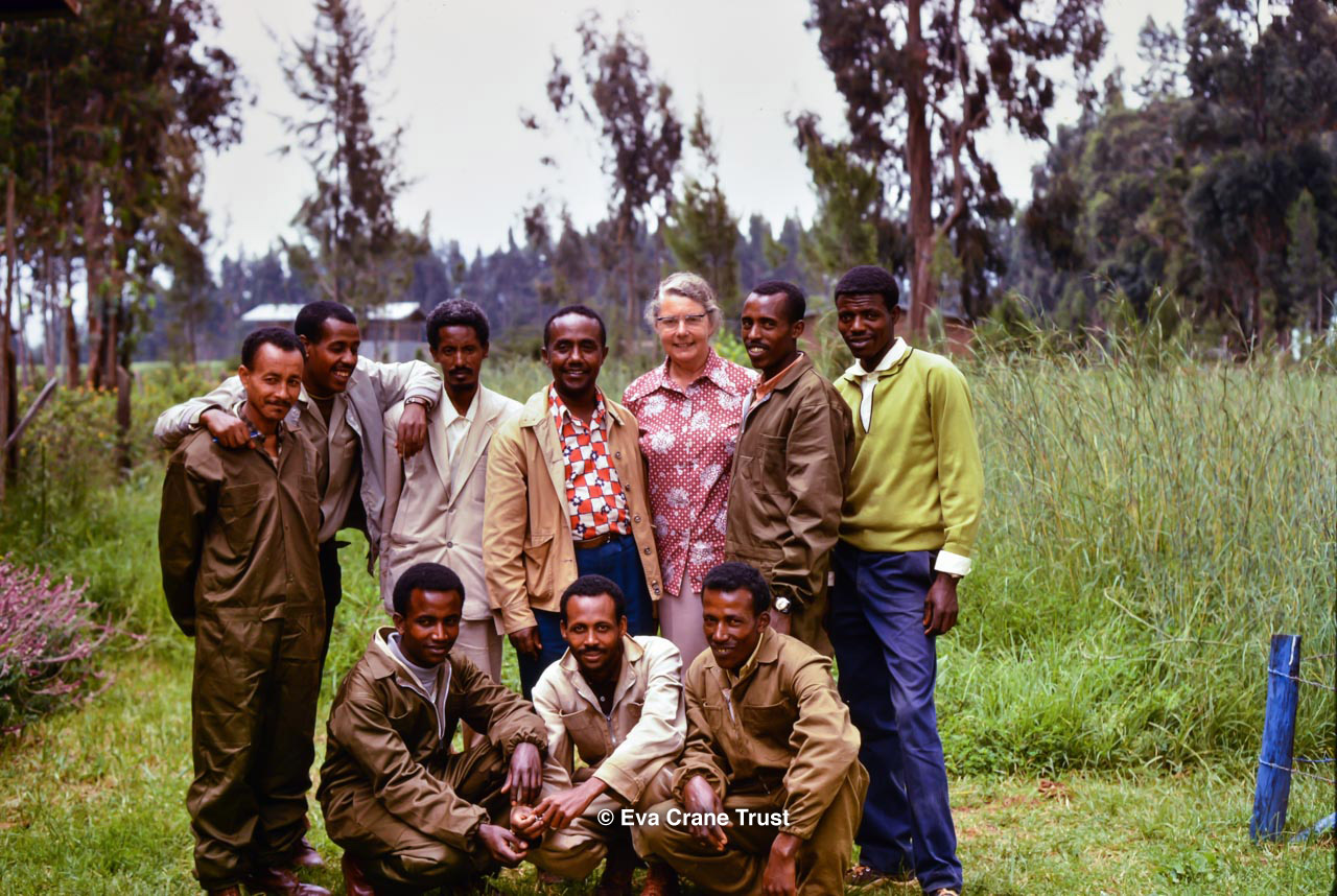 ETHIOPIA, Sept / Oct 1973, Holetta Beekeeping Station, Staff and Eva Crane.