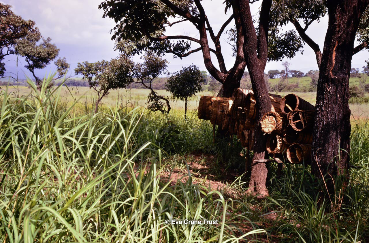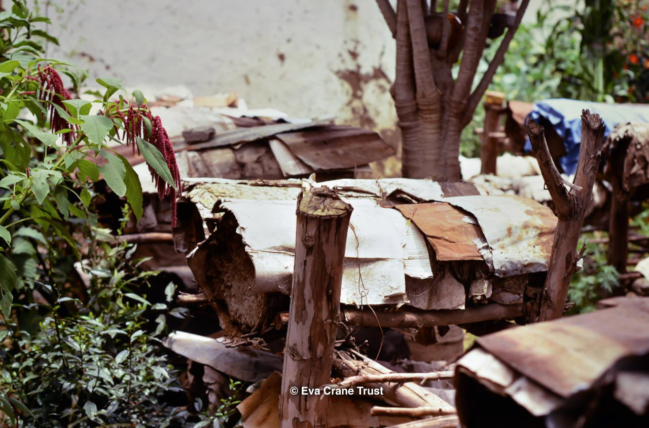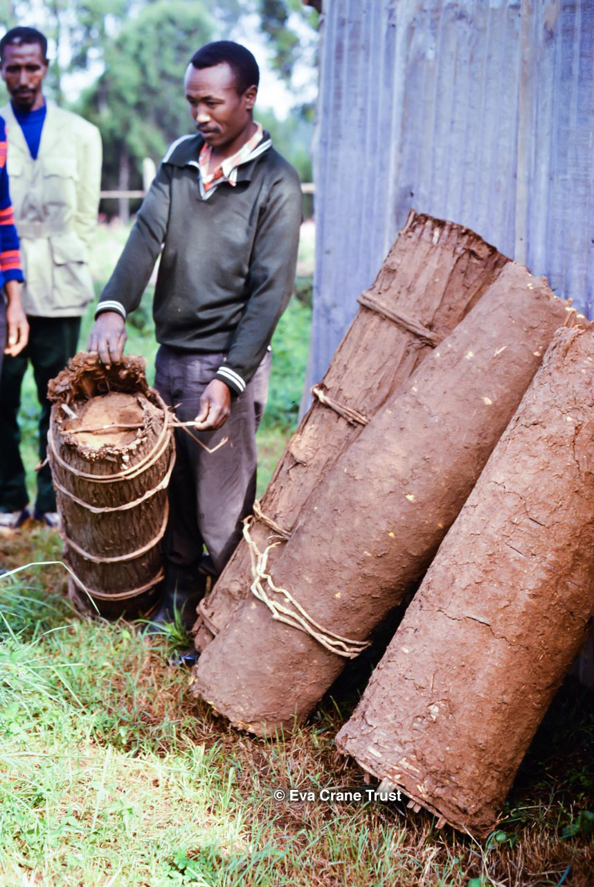 ETHIOPIA, Sept / Oct 1973, Rift Valley (Maskal holiday), Debre Zeyet. Peasant apiary with Apis mellifera adansonii.