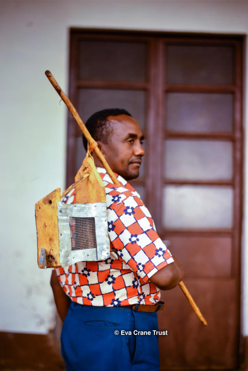 ETHIOPIA, Sept / Oct 1973, Holetta Beekeeping Station, Hive in ECT-3870 "collapsed" for transport.