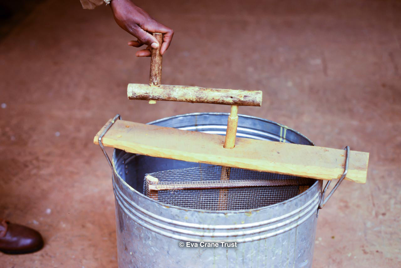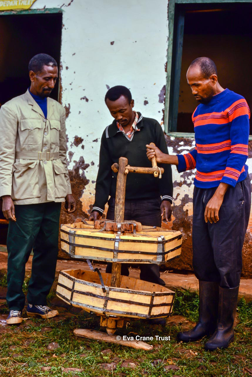 ETHIOPIA, Sept / Oct 1973, Holetta Beekeeping Station, Two queen excluders (one on stick belongs to swarm catcher).
