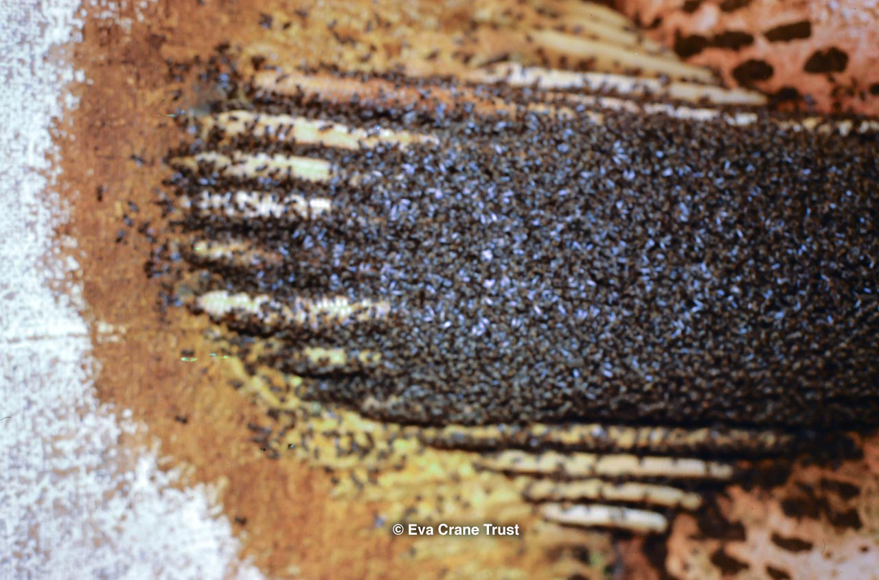 ETHIOPIA, Sept / Oct 1973, Visit to A.m. adansonii colony in bedroom, Colony on combs free-built from ceiling (parallel combs).