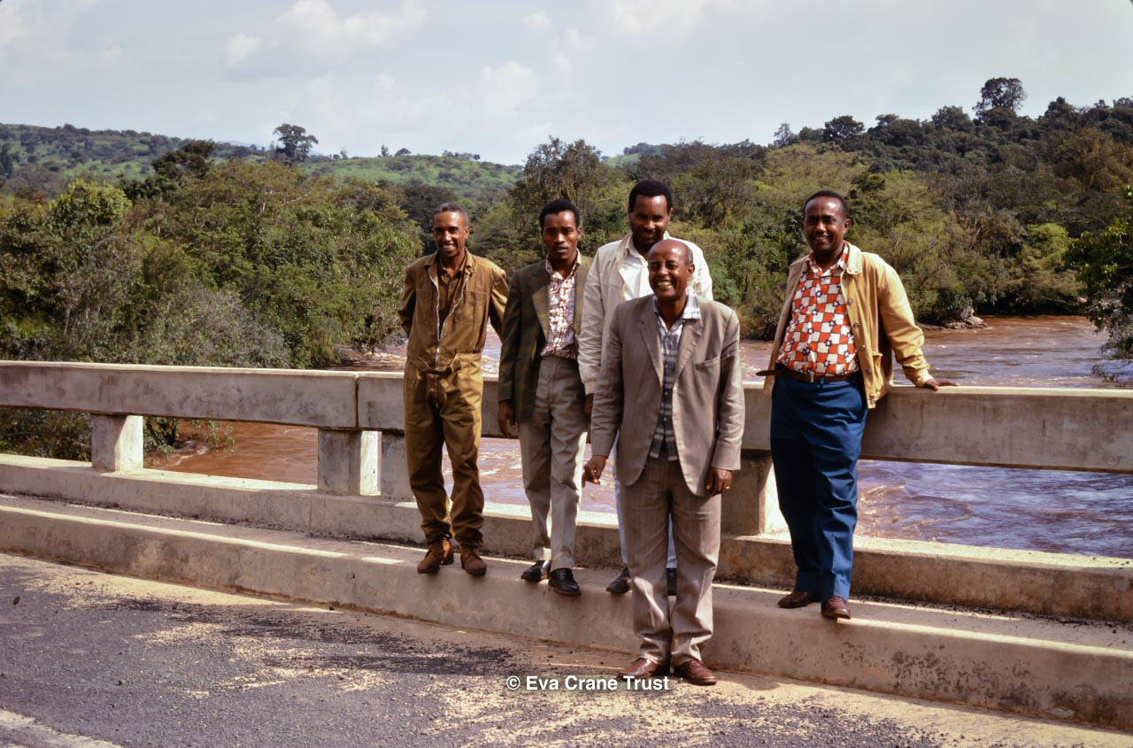 ETHIOPIA, Sept / Oct 1973, Nekemte Ghimbi, Bridge over Didesa/Dabena rivers with group.