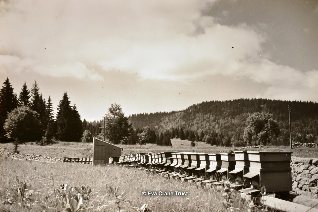 FRANCE, 1950, Apiary of Dadant-Blatt hives in Jura nears Pontarlier, beekeeping
