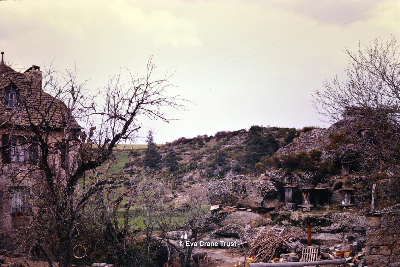 FRANCE, Montfavet, 1962?, Apiary above Neste de Lourons, beekeeping.