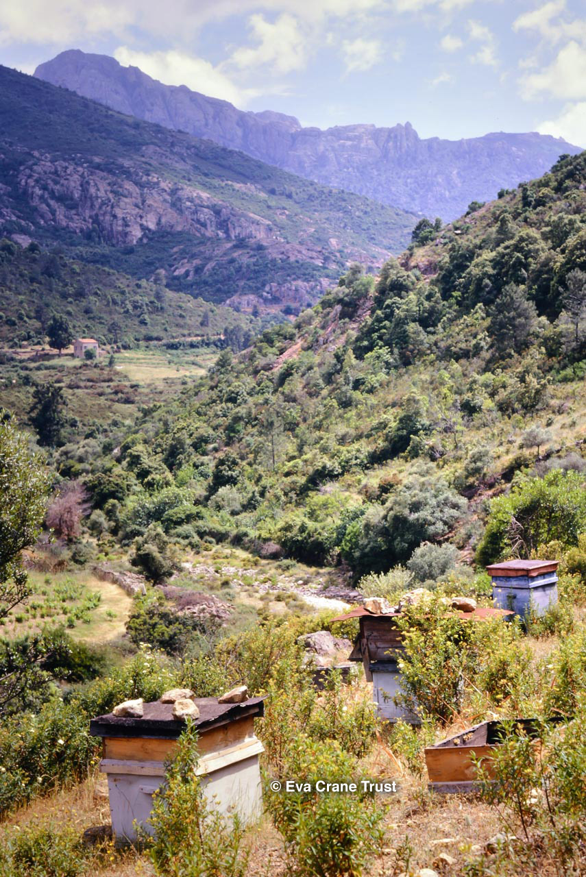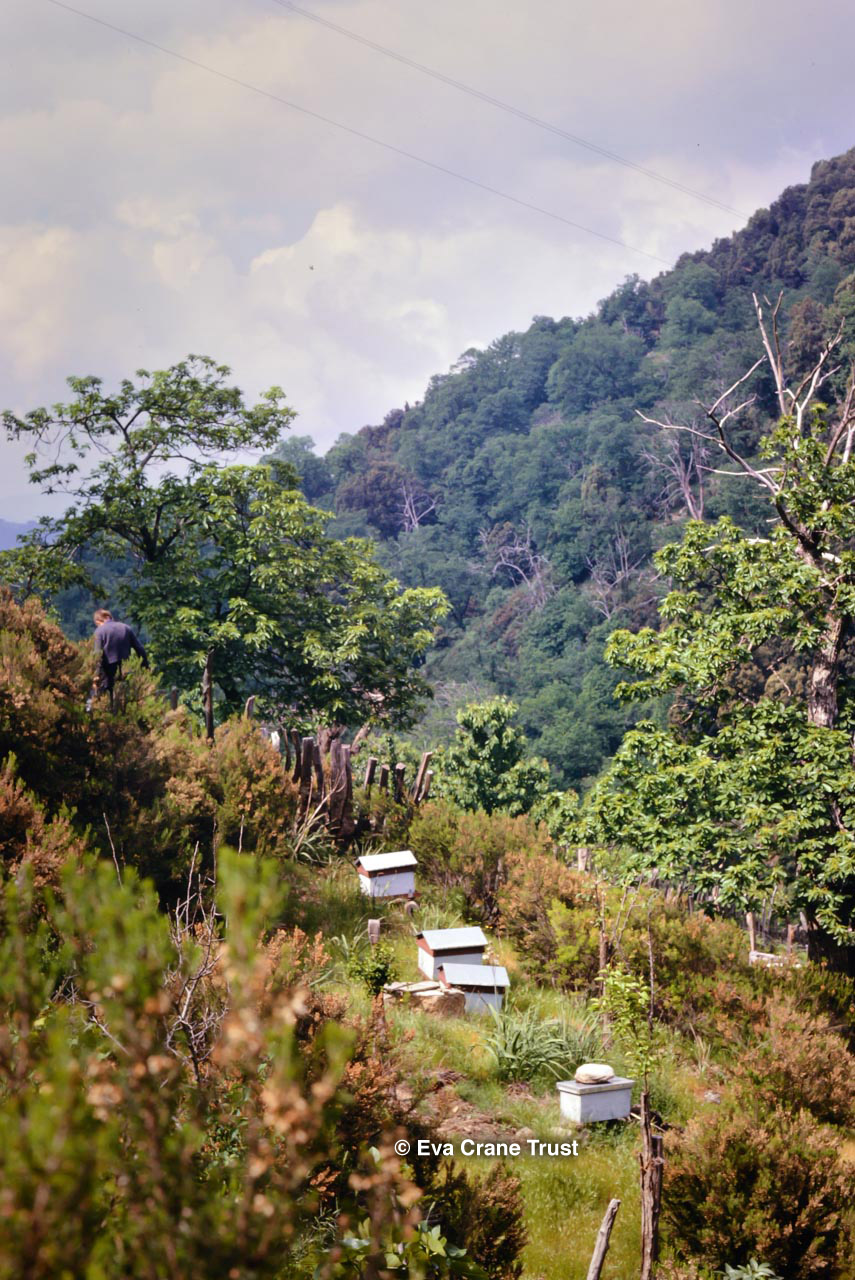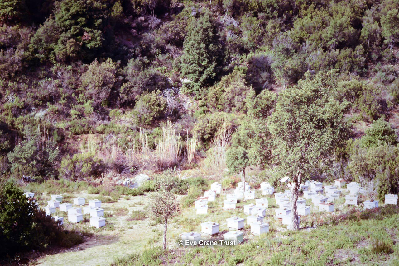 FRANCE, 1963, Apiary at Sorbollano Corsica, beekeeping.
