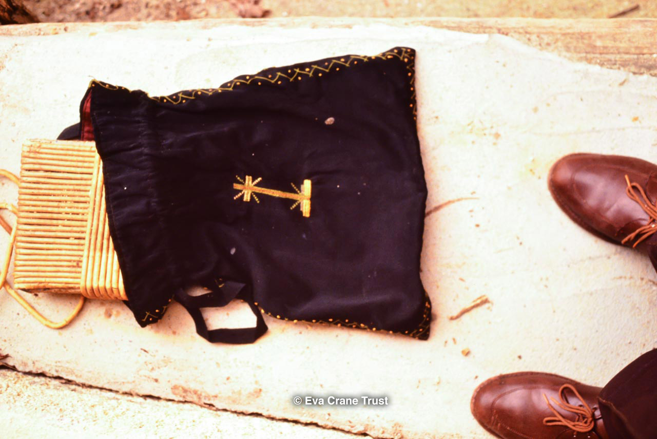 FRANCE, Museum La Cite des Abeilles St Faust Bearn October 1991, Beeswax funeral taper in black velvet bag, beekeeping.