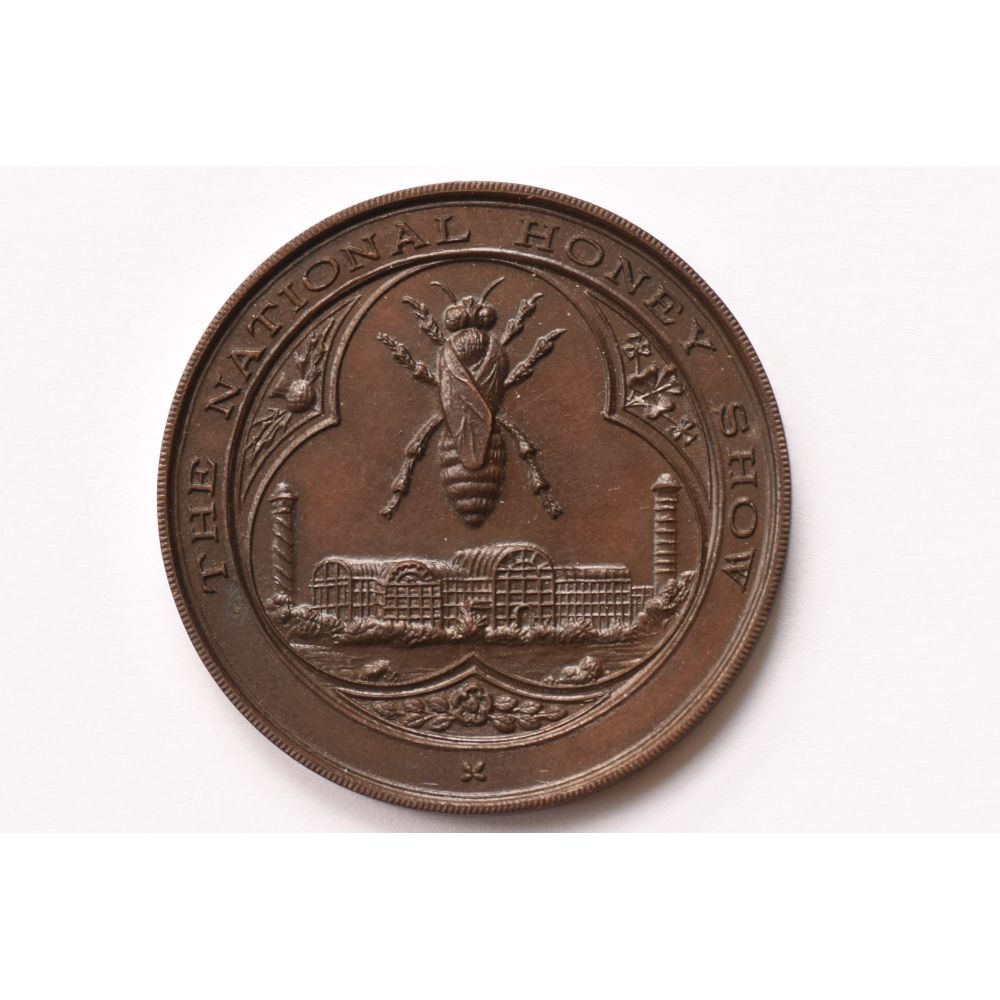 Obverse:Crystal Palace with bee above. 'The National Honey Show'. Reverse: Mrs Hodges 1949 for Design.'