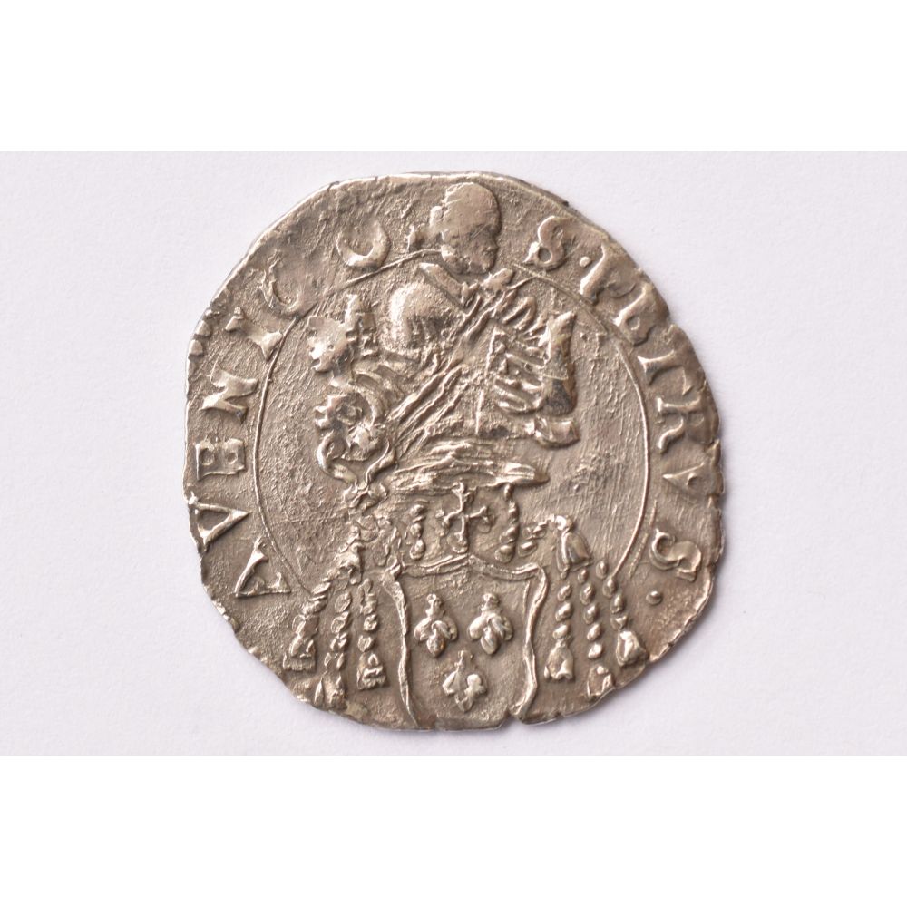 Obverse: shield of the Pope; lettering = VRBANVS.III.PONT.M.1631. Reverse: bust of Saint Peter above a cardinal hat and Barberini's coat of arms; lettering = S.PETRVS.AVENIO. VF (very fine). The Barberini family, an aristocratic Italian dynasty, attained enormous riches, power and influence in 17th-century Rome, peaking with the election of Cardinal Maffeo Barberini as Pope Urban VIII in 1623. The Barberini palaces, churches and fountains were all adorned with the family's coat of arms - an iconic image of three bees - as a visual reminder of their power and patronage in Baroque Rome.
