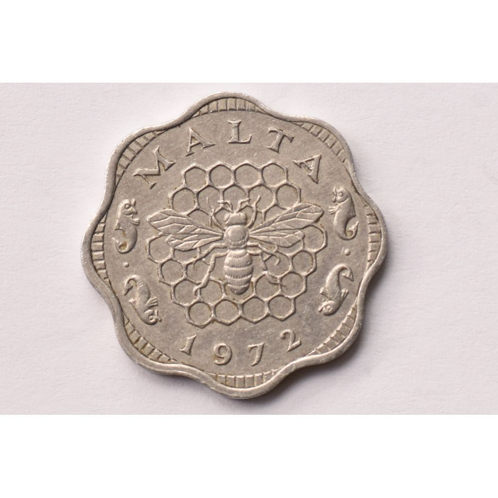 Very light weight silver coin. Obverse: 3 Mils and ivy leaves. Reverse: Around the edge 'Malta 1972' and 4 dolphines and in the centre is a bee on honeycomb. A similar design to the 1972 stamp for 3 Mils.