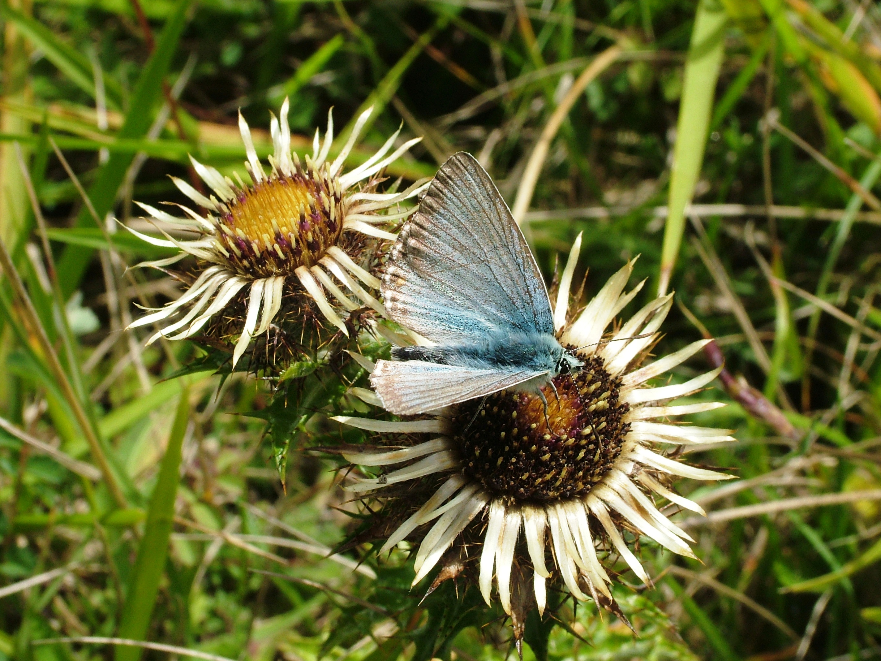 Figure 1 The Database of Pollinator Interactions details interactions both rare and common. The left image shows an infrequently recorded interaction between a chalkhill blue butterfly (Polyommatus coridon) and a carline thistle (Carlina acaulis). The right picture is of a honey bee (Apis mellifera) visiting greater knapweed (Centaurea scabiosa). Images: Nicholas J. Balfour.